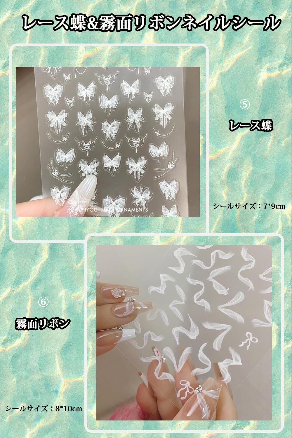 【2022最新】ネイルシール ネイルパーツ レース リボン 6枚セット 3D 立体感 ネイルステッカー ネイルデコレーション用 パーティー用 セルフネイル