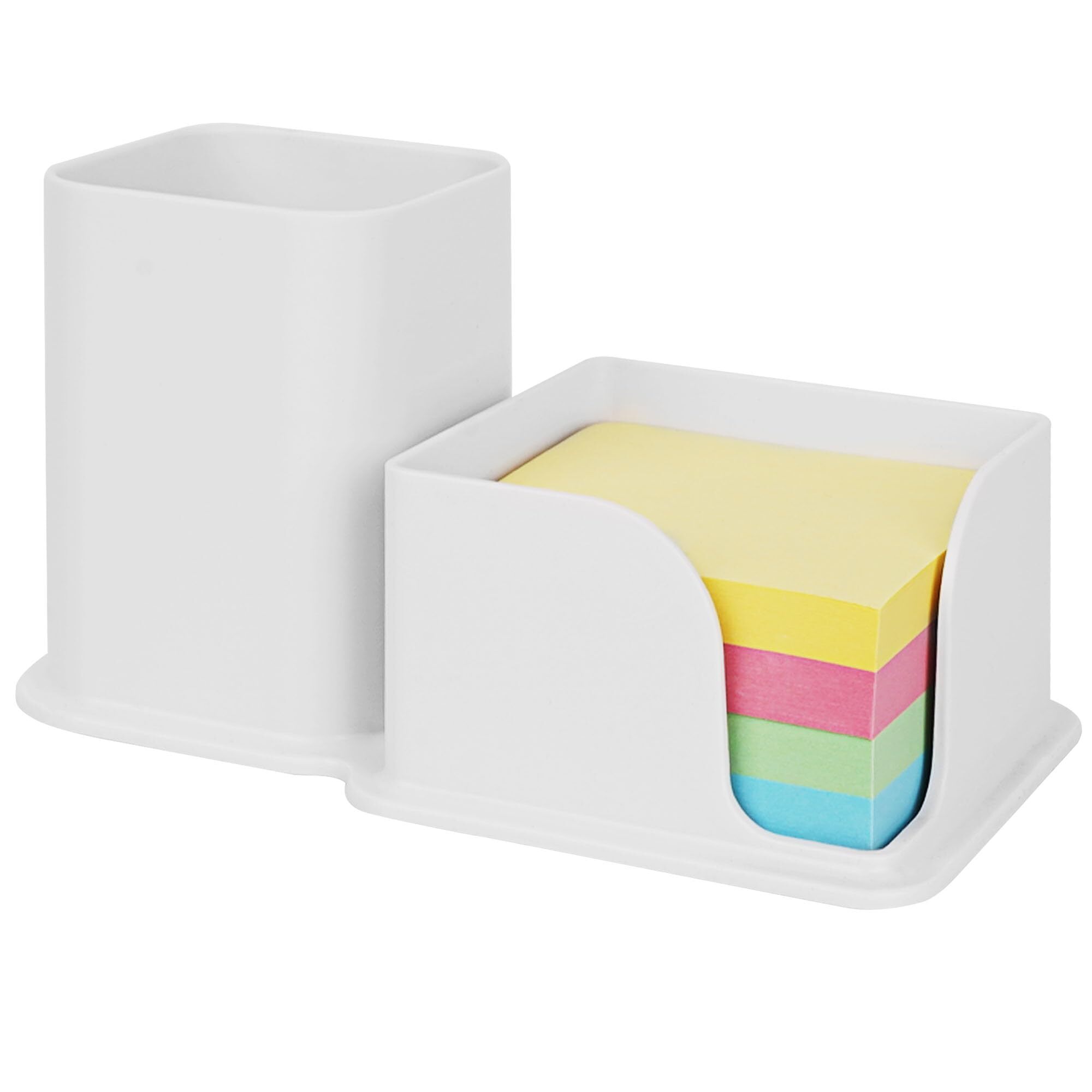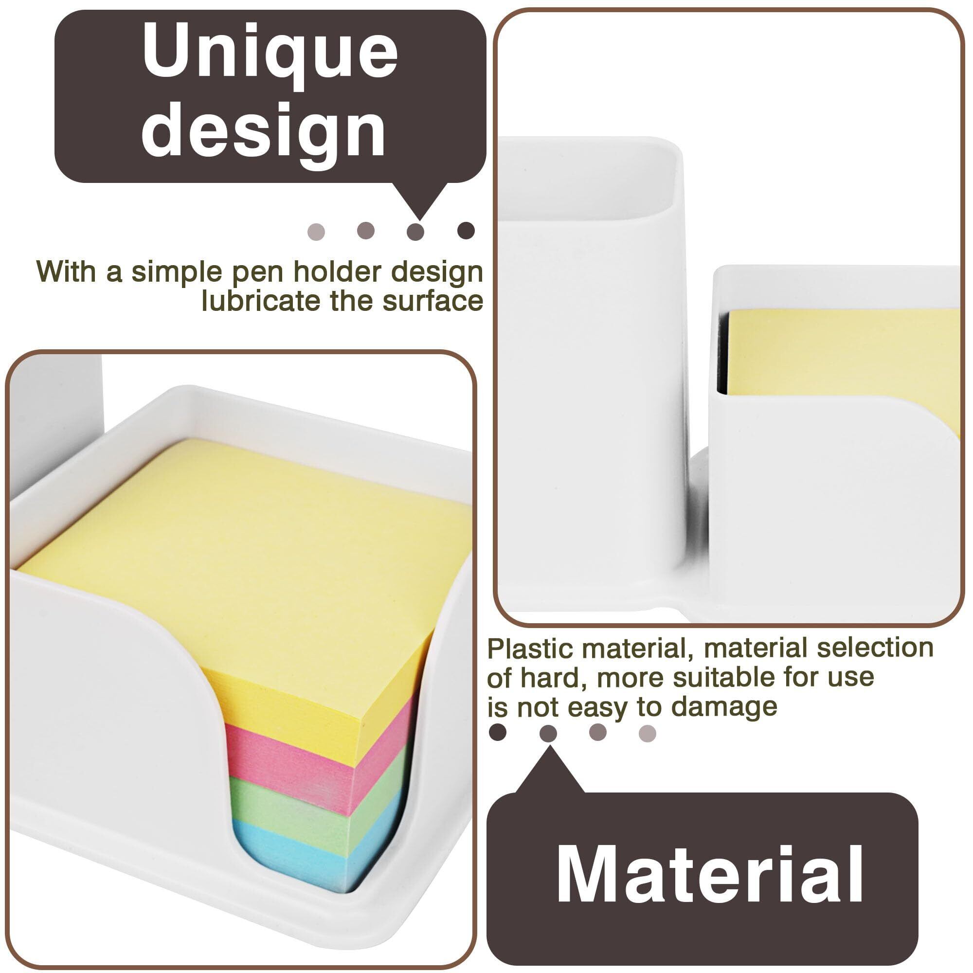 ペン/鉛筆/メモ用紙ラック 付箋ホルダー ポストイットディスペンサー ペン立て 400枚のメモ用紙付属 (ホワイト)