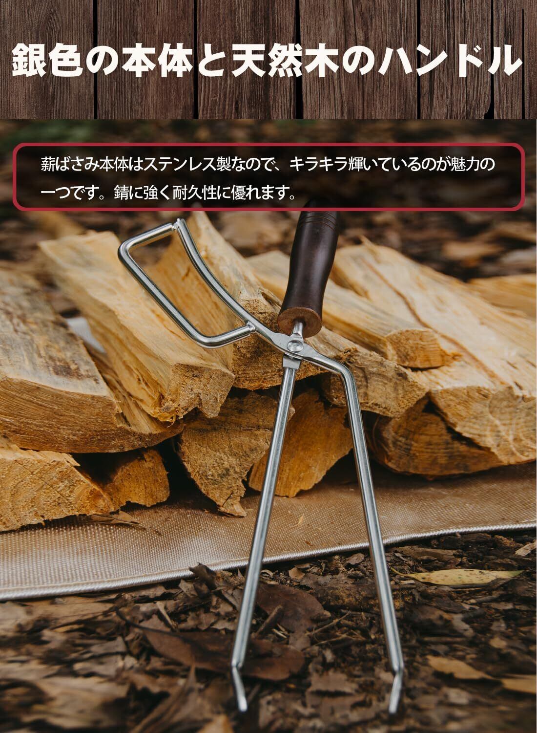 【高級感が溢れる】薪ばさみは頑丈なステンレス素材で作られて、曲がりや変形に強く、耐久性に優れています。火ばさみのグリップは天然木で使われて、おしゃれで握りやすいです。スタイリッシュで武骨なシブい存在感があり、使い込むほど味が出て、キャンプ上級者を演出できるデザインです。