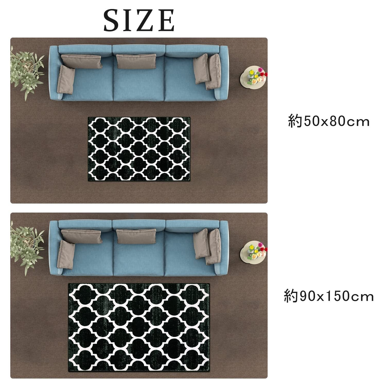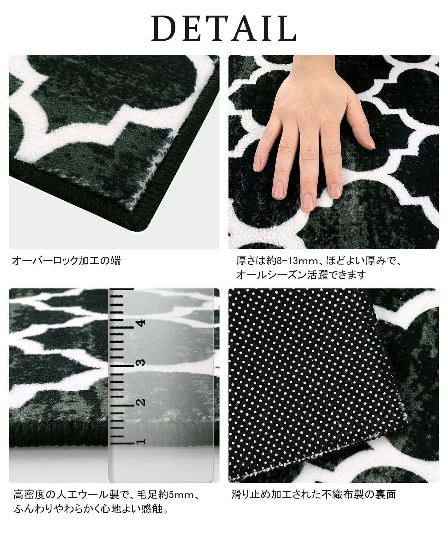 【商品仕様】サイズ:50x80cm、厚さ:約6~10mm、表面素材:100%ポリエステル。裏面素材:不織布(すべり止め加工)。オーバーロック加工の端、遊び毛が出たり、形を崩れたりしにくい。梱包:折り畳み。