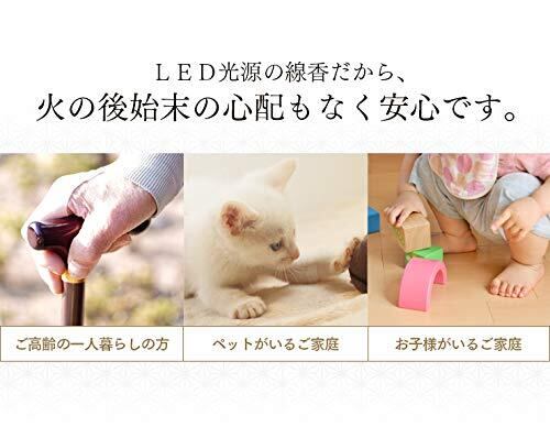 消し忘れの心配無し!火を使わないLED線香。自動消灯で安心してお使い頂けます。小さなお子様がいるご家庭や一人暮らし、ペットがいるご家庭に。ミニサイズで、コンパクトな仏壇、神棚にも。約10分間の自動消灯機能付。線香の本数は調整可能。※線香をなくさないように注意してください。