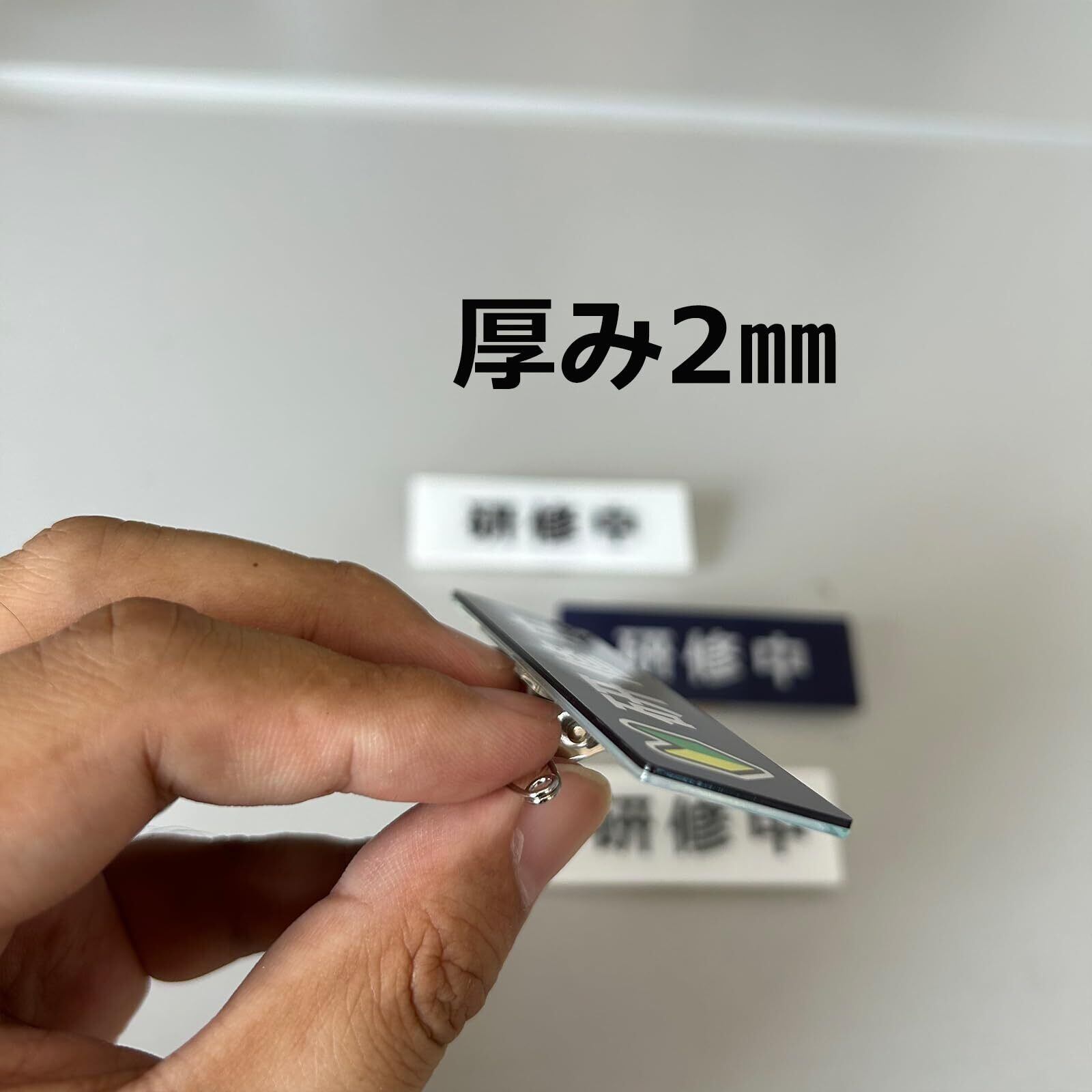 研修中 バッジ クリップ ピン バッジ アクリル製 初心者マーク 若葉マーク 75×25×2mm