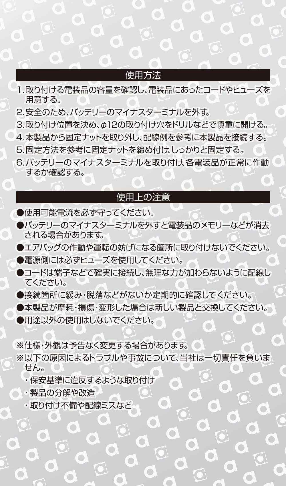 使用可能電流:DC12V車・5A以下/DC24V車・2.5A以下