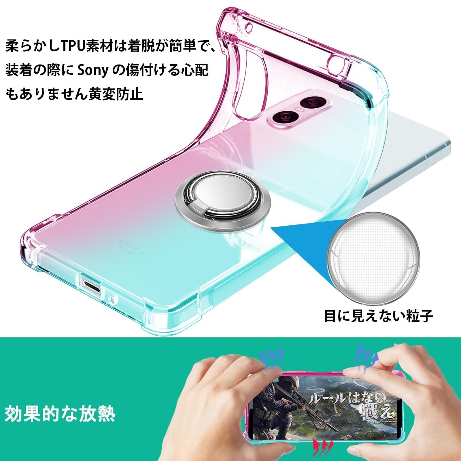 Xperia 10 VI ケース リング TPU 薄型 軽量シリコン エクスペリア 10 vi カバー グラデーション色 ケース 耐衝撃 指紋防止 車載ホルダー対応 防塵 一体型 人気 携帯カバー (ピンクグリーン)