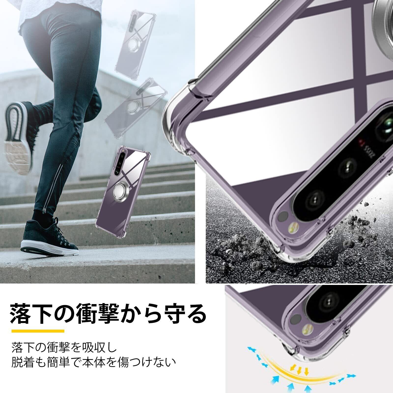 Xperia 1 IV ケース リング クリア TPU シリコン リング付き 薄型 SO-51C カバー SOG06 ケース 軽量シリコン 耐衝撃 指紋防止 360回転 車載ホルダー対応 一体型 人気 携帯カバー (クリア)
