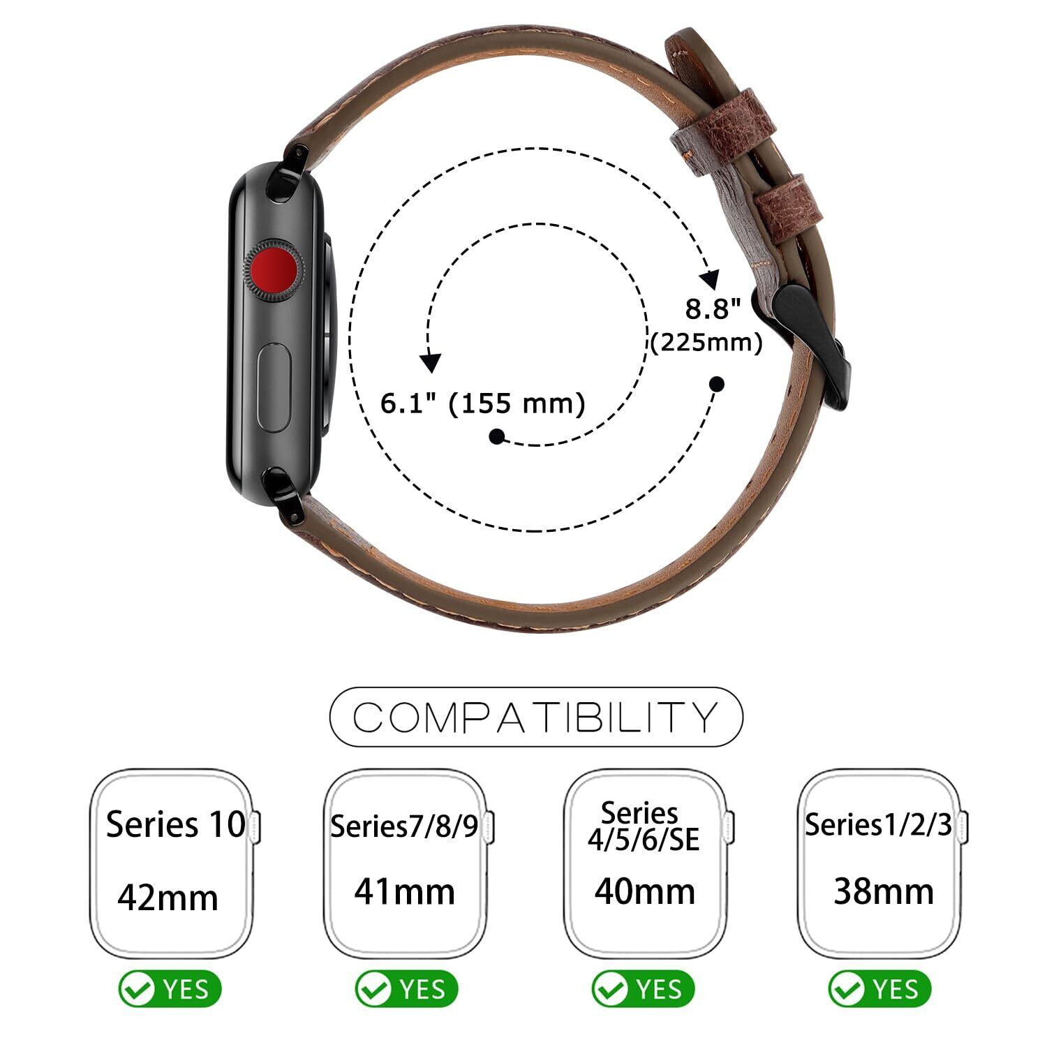コンパチブル Apple Watch バンド 42mm(シリーズ10) 41mm 40mm 38mmアップルウォッチ バンド, 高級 本革 交換バンド ビジネス Apple Watch シリーズ10/9 / 8 / 7 / 6 / 5 / 4 / 3 / 2 / 1 / SE2 / SE 用 (38mm 40mm 41mm,ダークブラウン)