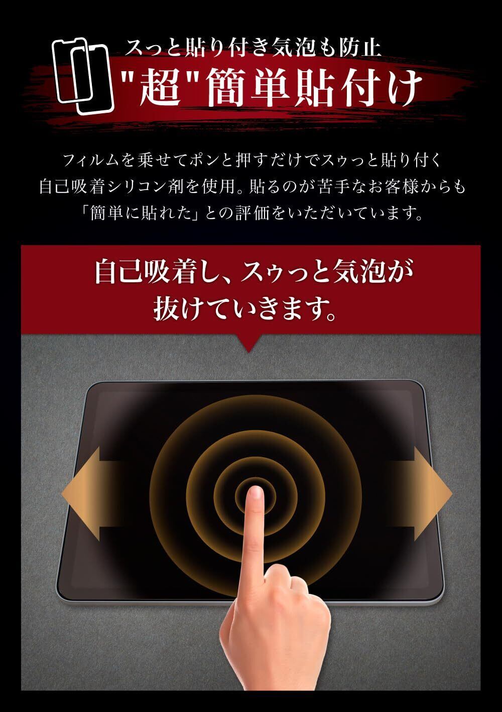 【ホコリ除去】フィルム貼りの天敵であるホコリの侵入に対応するため、「ホコリ除去シール」、「静電気防止シリコン」の2つの方法でホコリの侵入を防ぎます。ホコリが入ってしまった場合は、ベルモンドまでお知らせください。【貼り付け応援キット】拭き上げキット、取扱説明書、動画マニュアルを同封し、手順通りに作業するだけで簡単に貼り付けが可能です。