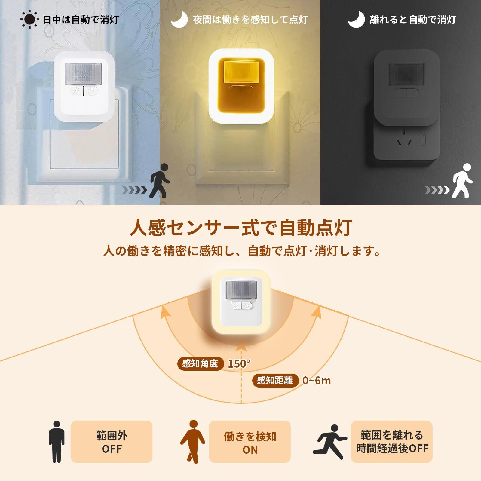 【2025年最新・PSE認証済】人感センサーライト 室内用 足元灯 明るさ10段階・点灯時間4モード・折りたたみプラグ搭載 コンセント式 高齢者の夜間トイレ対策 寝室/廊下/トイレに最適(オレンジ)