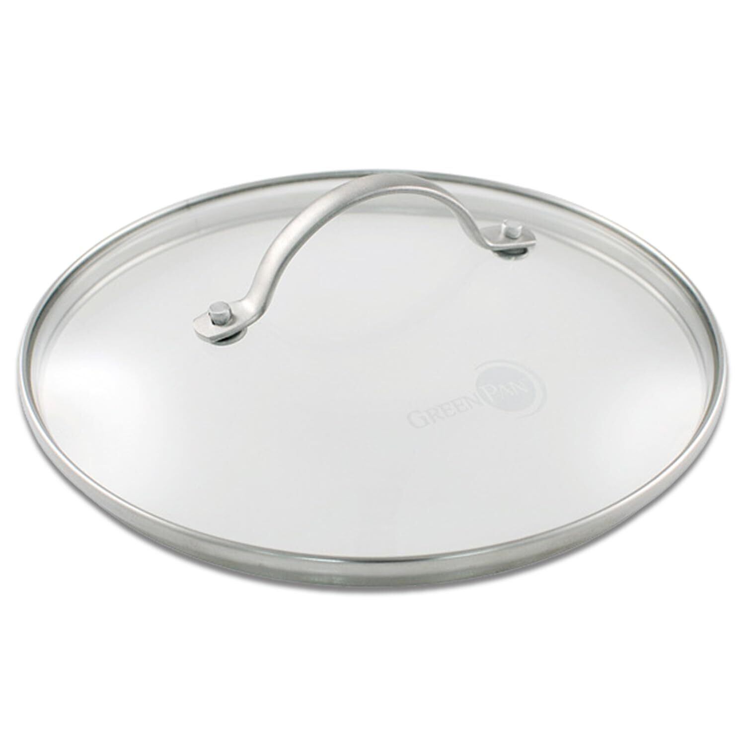 グリーンパン(Greenpan)のユニバーサルタイプのガラス蓋です。上品なデザインのステンレス製ハンドルを全面物理強化ガラスに付けています。