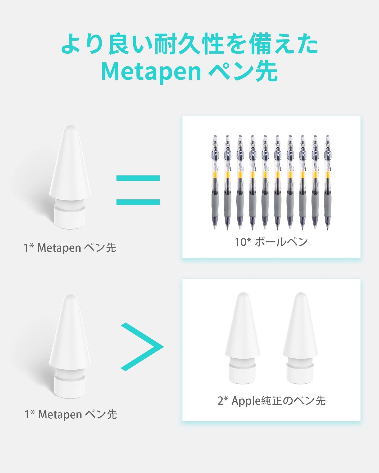 【A-pple純正ペンと同サイズ】Metapenペン先は、A-pple純正のペン先と同じサイズで、まさに1:1再現、視界を遮らず、ペン自体を傾けても見やすいので、小さな文字でのメモ書きや専門的な絵などを書くことができます。 鉛筆の使用頻度が高い方にとって、大きなコストパフォーマンスを発揮します。