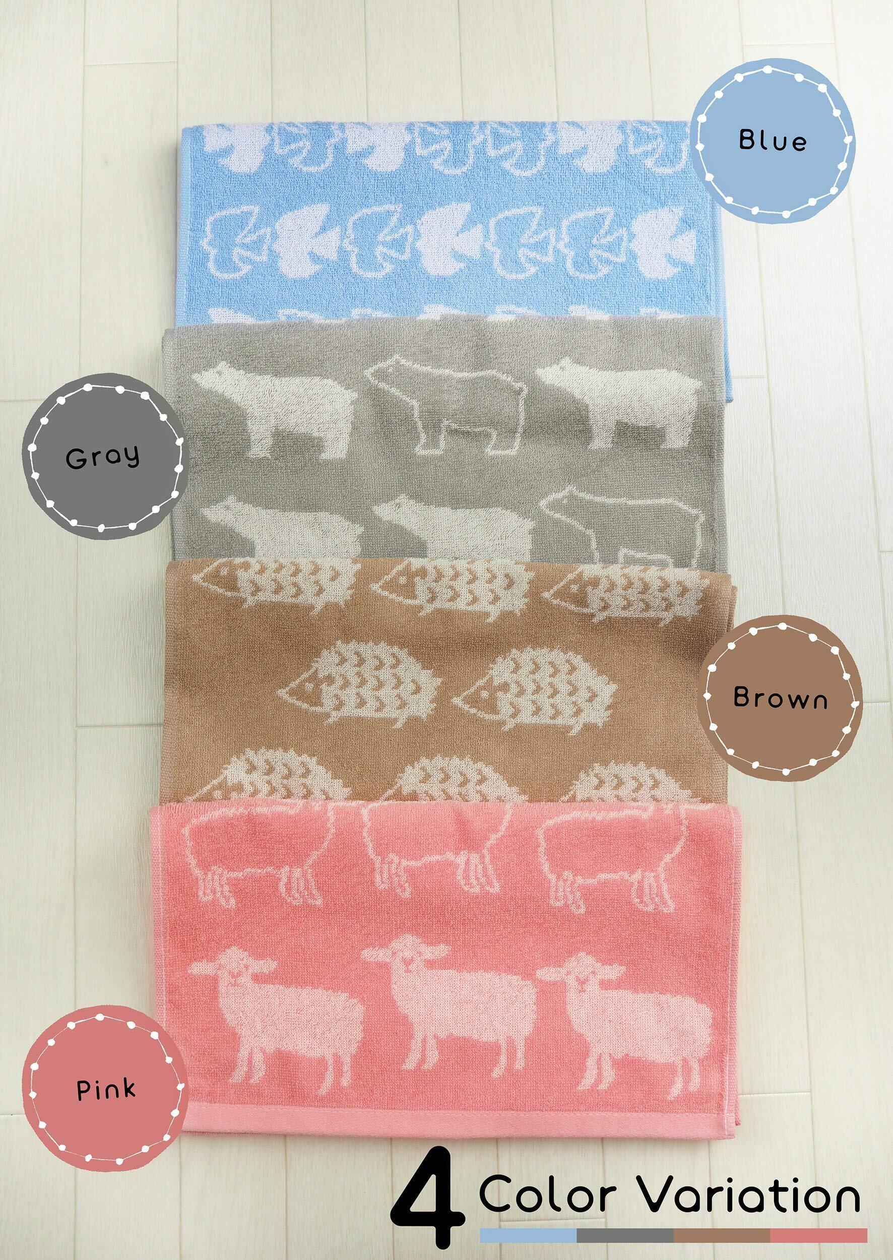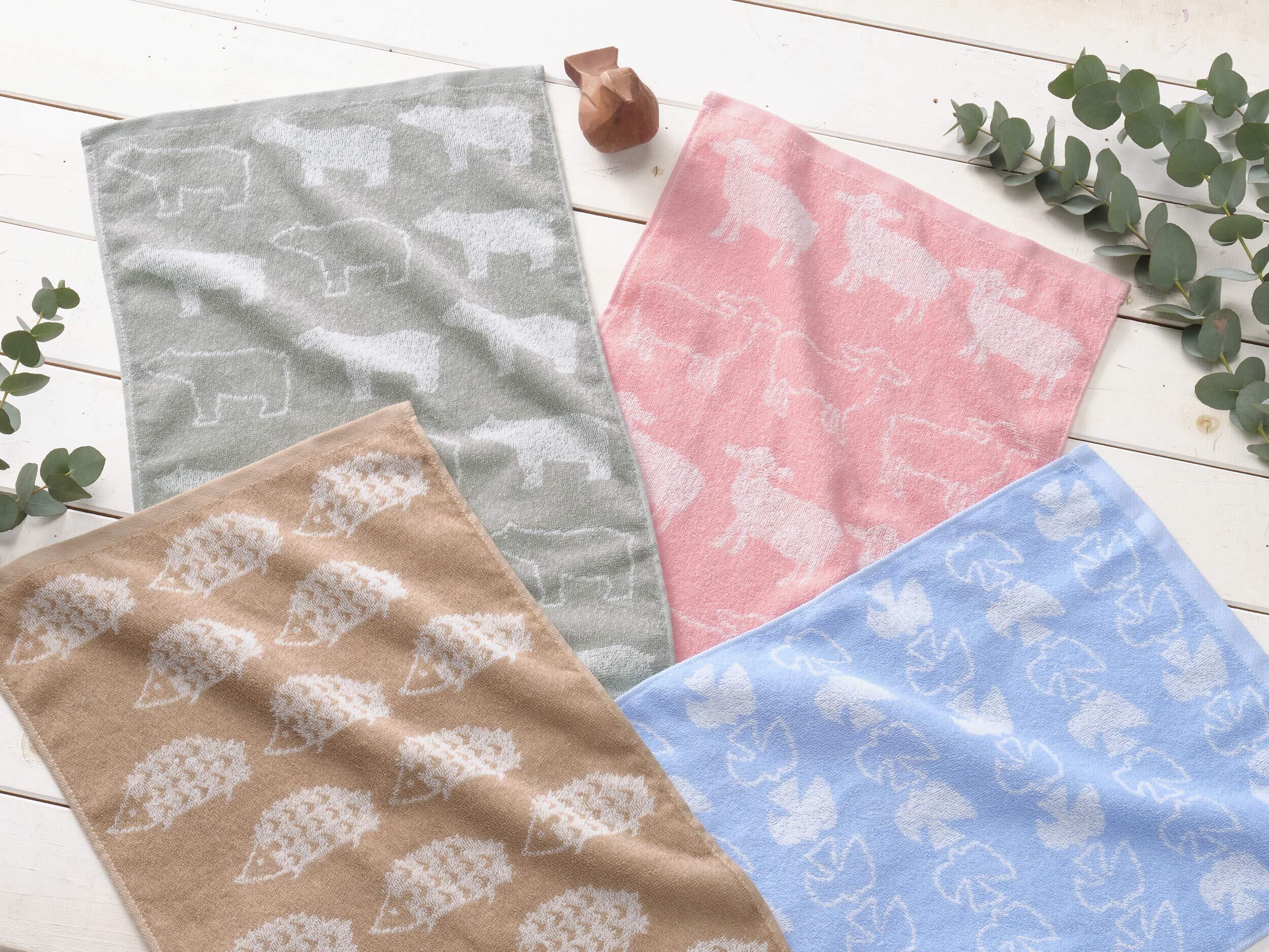 Kosugizen フェイスタオル 北欧アニマル 4色(4柄)各1枚入 34×80㎝ 北欧調のアニマルモチーフ ほどよいボリューム感 4枚セット SV-263-4