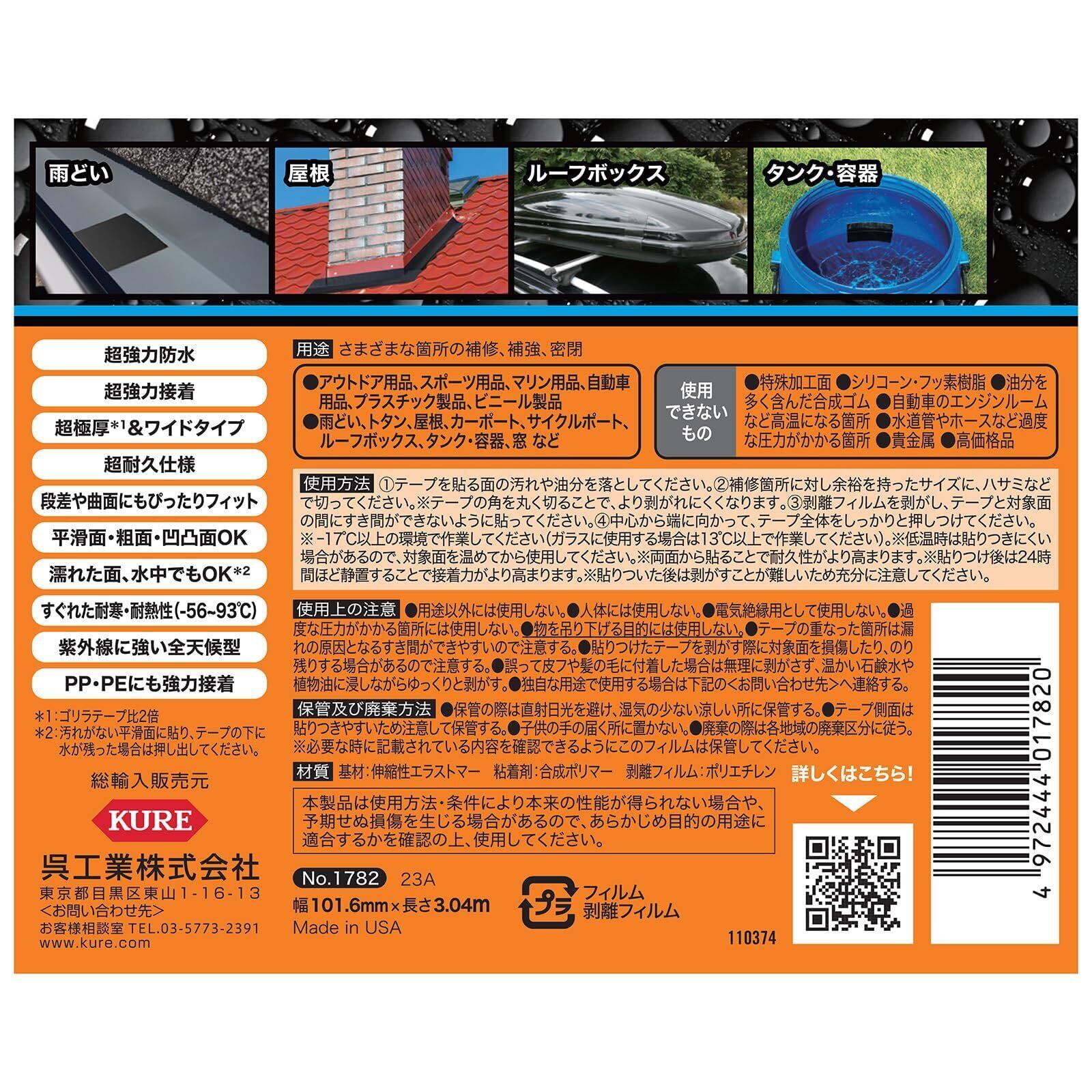 ゴリラテープ エクストリーム ウォータープルーフブラック 101.6mm×3.04m 強力多用途防水補修テープ 1782