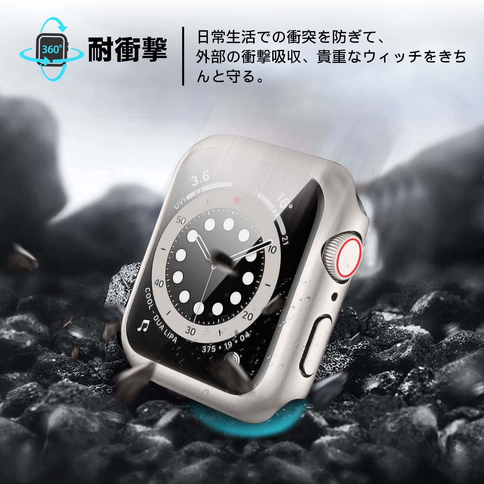 Apple Watch用 ケース iWatch Series 10/9/8/7/6/5/4/SE2/SE 40mm対応 超薄型 アップルウォッチ用 カバー 防水 硬度9H 強化ガラス 高透過率 高耐久 耐衝撃 全面保護 Apple Watch用 カバー スターライト
