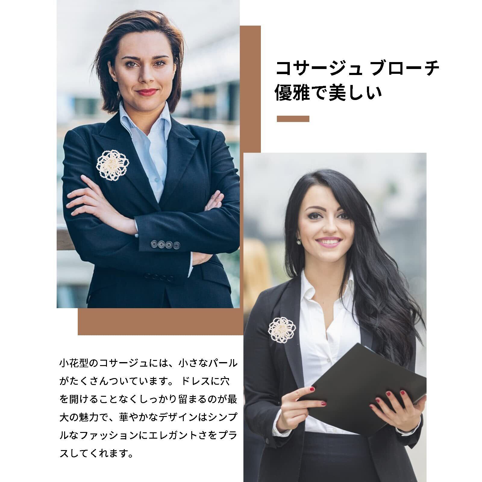 【コサージュ】小花型のコサージュには、小さなパールがたくさんついています。 ドレスに穴を開けることなくしっかり留まるのが最大の魅力で、華やかなデザインはシンプルなファッションにエレガントさをプラスしてくれます。