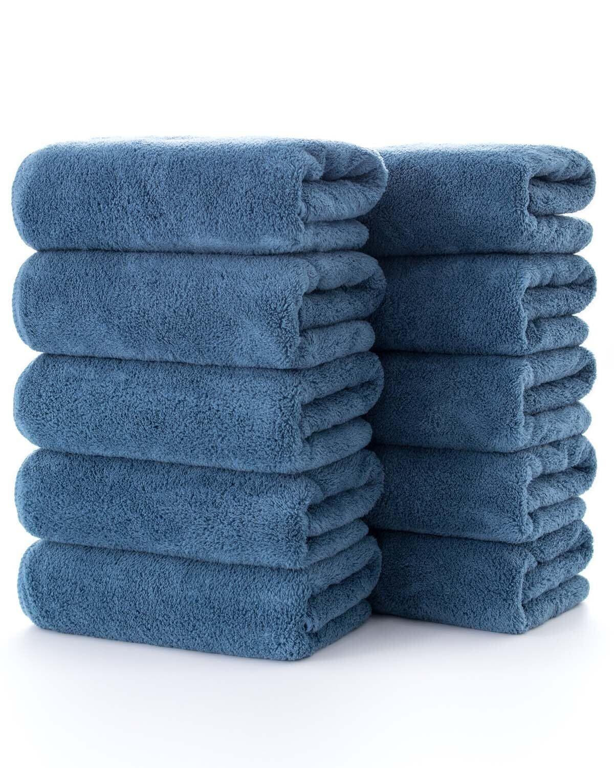 フェイスタオル 【10枚セット スモーキーブルー 35*75cm】速乾 ホテル仕様/業務用/家庭/スポーツなどに最適 マイクロファイバー 瞬間吸水 柔らかい 素肌にやさしい 四季通用