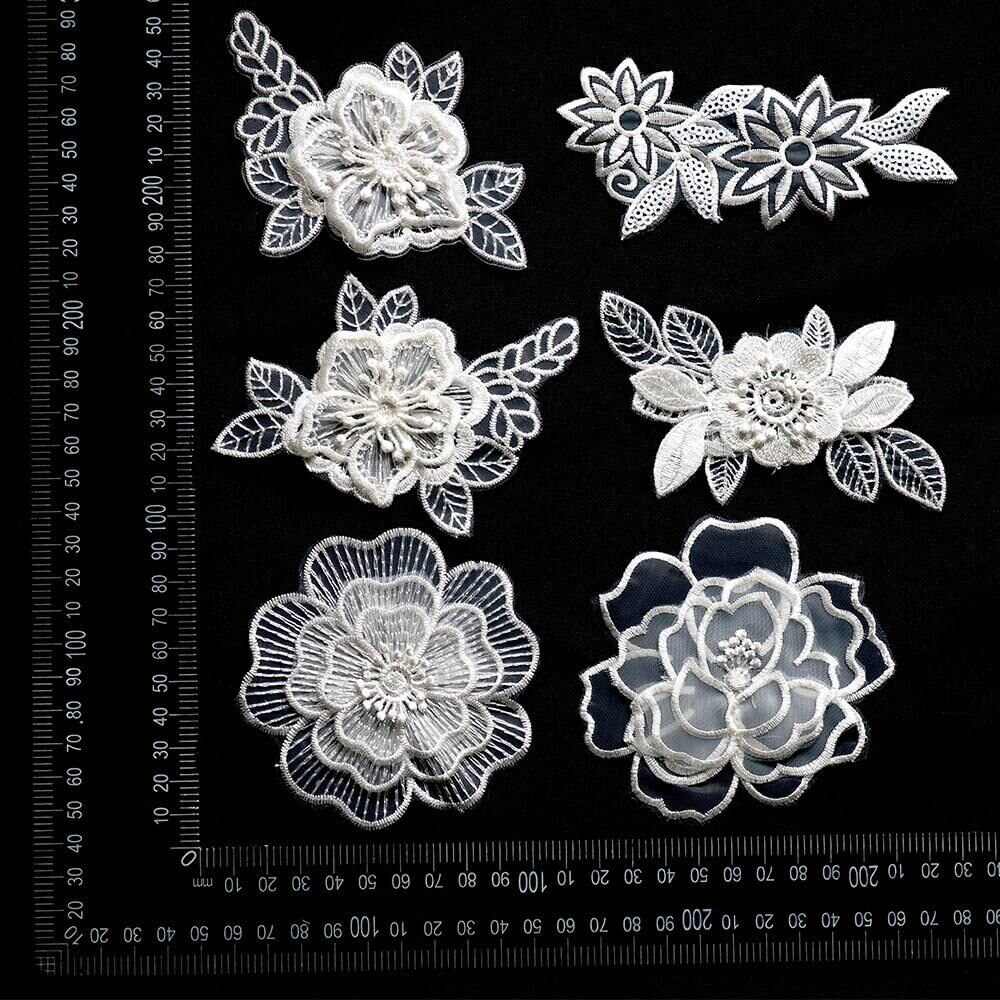 【2022最新】人気レース生地 刺繍花 花と蝶のパターン 縫製 DIY 服 工芸品の装飾 パッチ アップリケ モチーフ バッグ 靴 帽子 飾り アクセサリー ((ホワイト 6個セット②)) | allstore2