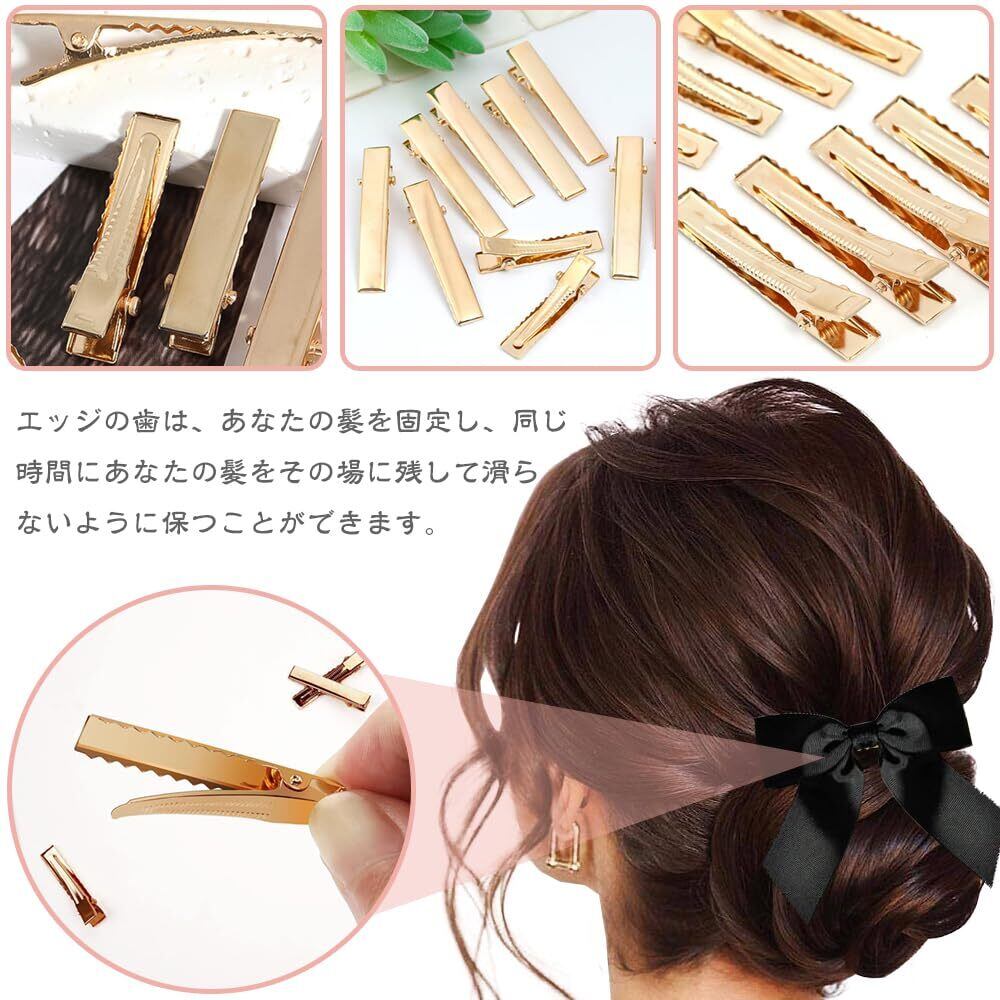 ヘアクリップ ヘアバレッタ ストレートやっとこピン 4.1CM 50個セット 髪とめ ダッカール ワニ口クリップ 前髪 散髪 クリップ ステンレス 前髪クリップ アクセサリー作り DIY 手芸部品 金具 子供 レディース シンプル髪留め しっかり ヘアスタイリング用 (ゴールド)