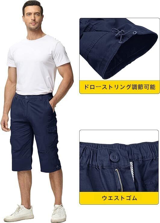 カーゴパンツ メンズ 夏服 ハーフパンツ スポーツ 七分丈 綿 ゴルフウェア 釣り 半パンツ 薄手 ポケット付 作業着 無地 短パン 調整紐 半ズボン