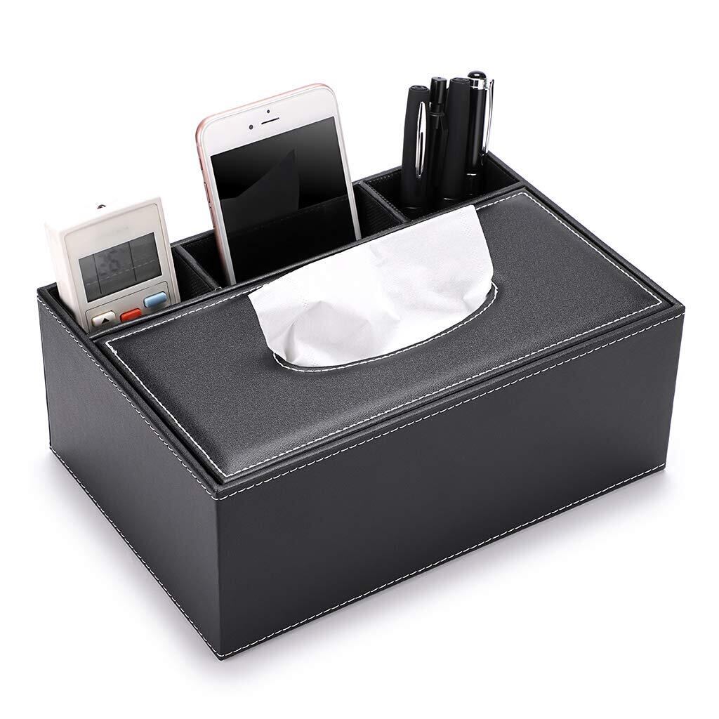 Sumnacon 多機能 卓上収納ケース ティッシュケース リモコンスタンド おしゃれ ティッシュボックス リモコンケース 卓上収納 ティッシュ リモコン ペン立て 小物入れ (ブラック)