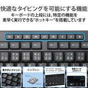 ■音が気になる場所や時間帯での使用に適したBluetooth(R)静音フルキーボードです。数字入力に便利なテンキー付きのフルキーボードで、エクセルなどの作業を効率化します。