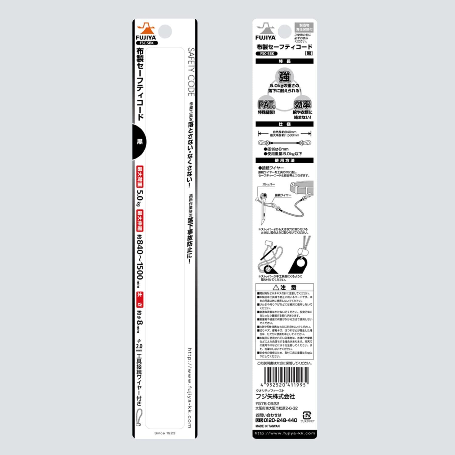 【特価セール】[フジ矢] Fujiya 布製セーフティコード 5kgタイプ 黒 FSC-5BK