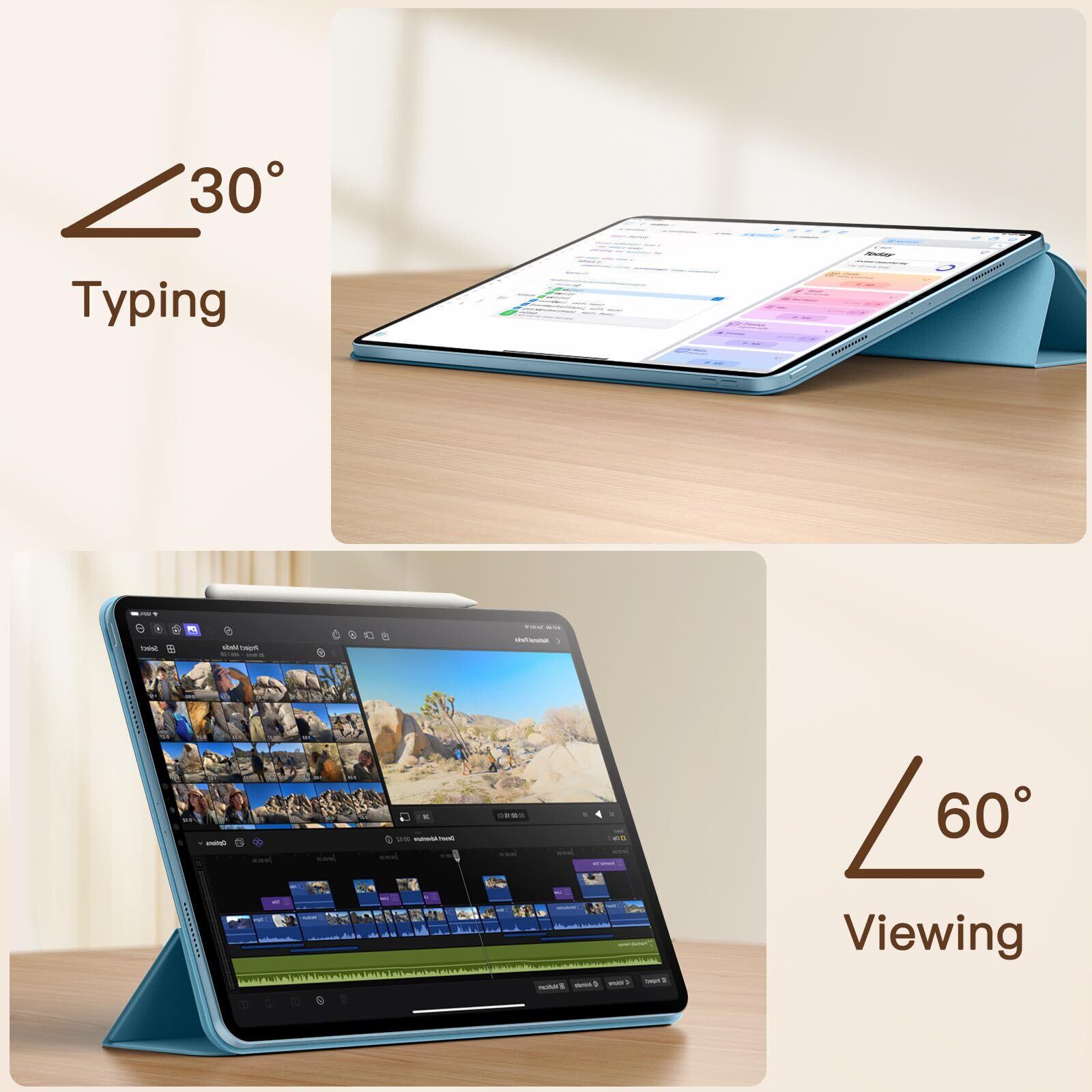[三つ折りケース] 三つ折りフロントカバーにより、2つスタンド角度をサポートでき、視聴とタイピングのニーズを満たします