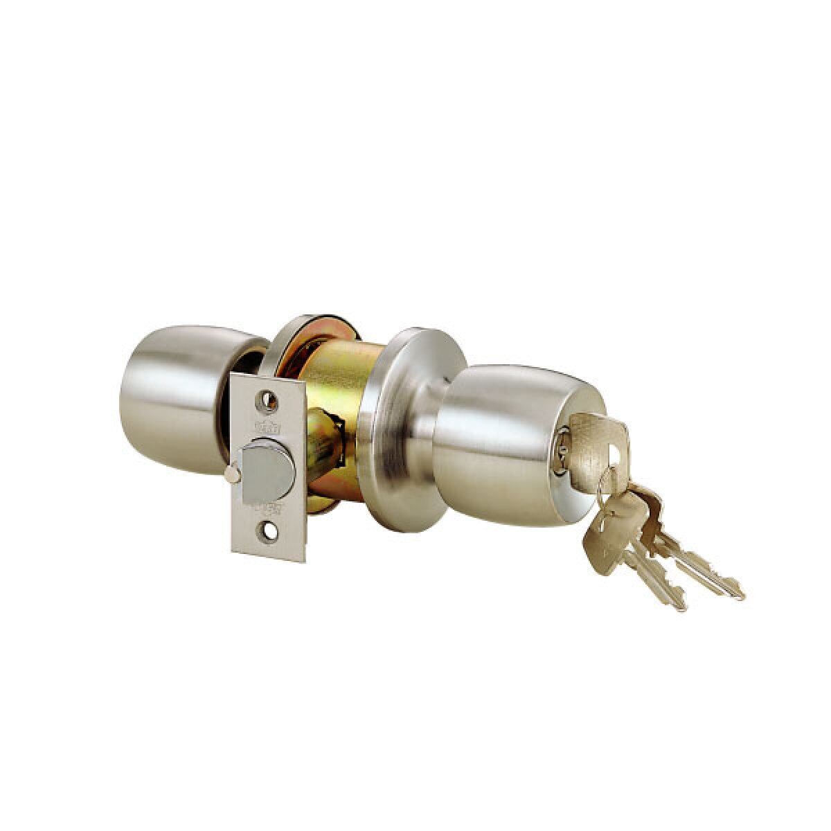 チェック1:錠前の種類が円筒錠(ロックすると外側のノブが廻らなくなります。扉に円穴を開けて取り付ける錠前で、ノブの中にシリンダーが組み込まれています。)
