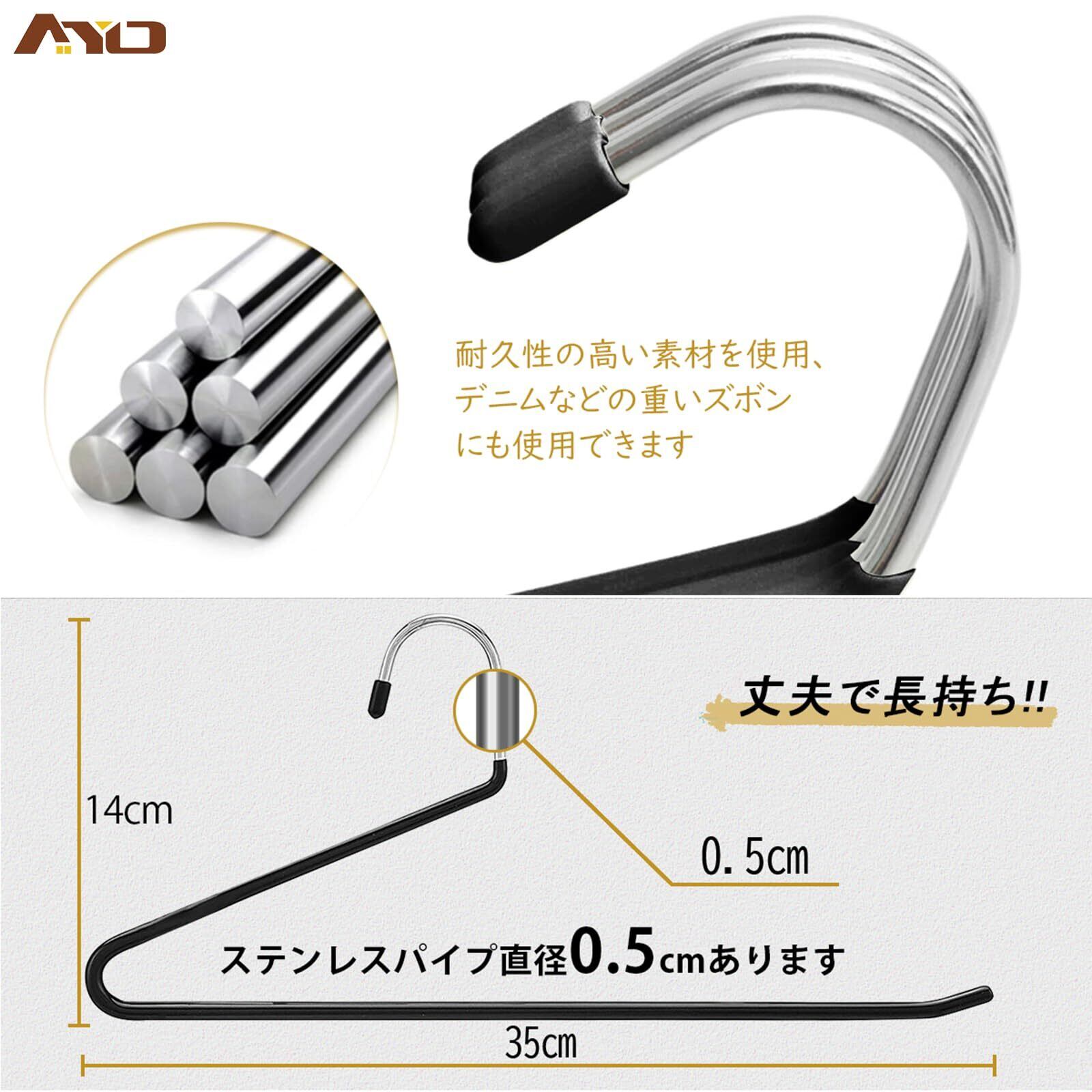 【優れた耐久性】ズボンハンガーは高品質の合金鋼素材でできており、頑丈で耐久性があり、変形しにくいです。細くて軽いのですが、冬用の長いストールをかけたり、重いジーンズをかけて、落ちなくてすっきりと片付きます。長持ちできる高品質ズボンハンガーです。