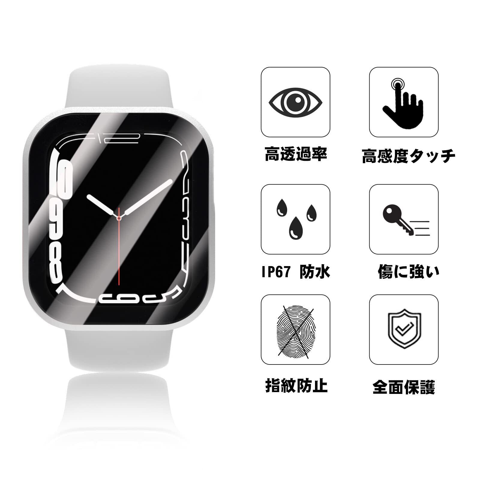 【防水・防塵ケース】シーリングリング内蔵したアップルウォッチ ケース、Apple Watchの画面にぴったりとフィットし、水の浸入を防ぎます。ほこりを完全に防ぎ、ケースを取り外して水を拭くすることを繰り返す必要はありません。疎水性撥油性抜群の強化ガラス表面により、カバー面に水が溜まらず、シャワー、手洗い、発汗、運動、雨など、日常の使用に適しています。 ※ご注意:ウォッチの画面とカバーの間に水が浸入する場合、保護カバーを取り外し、柔らかい布で水を乾かしてください。