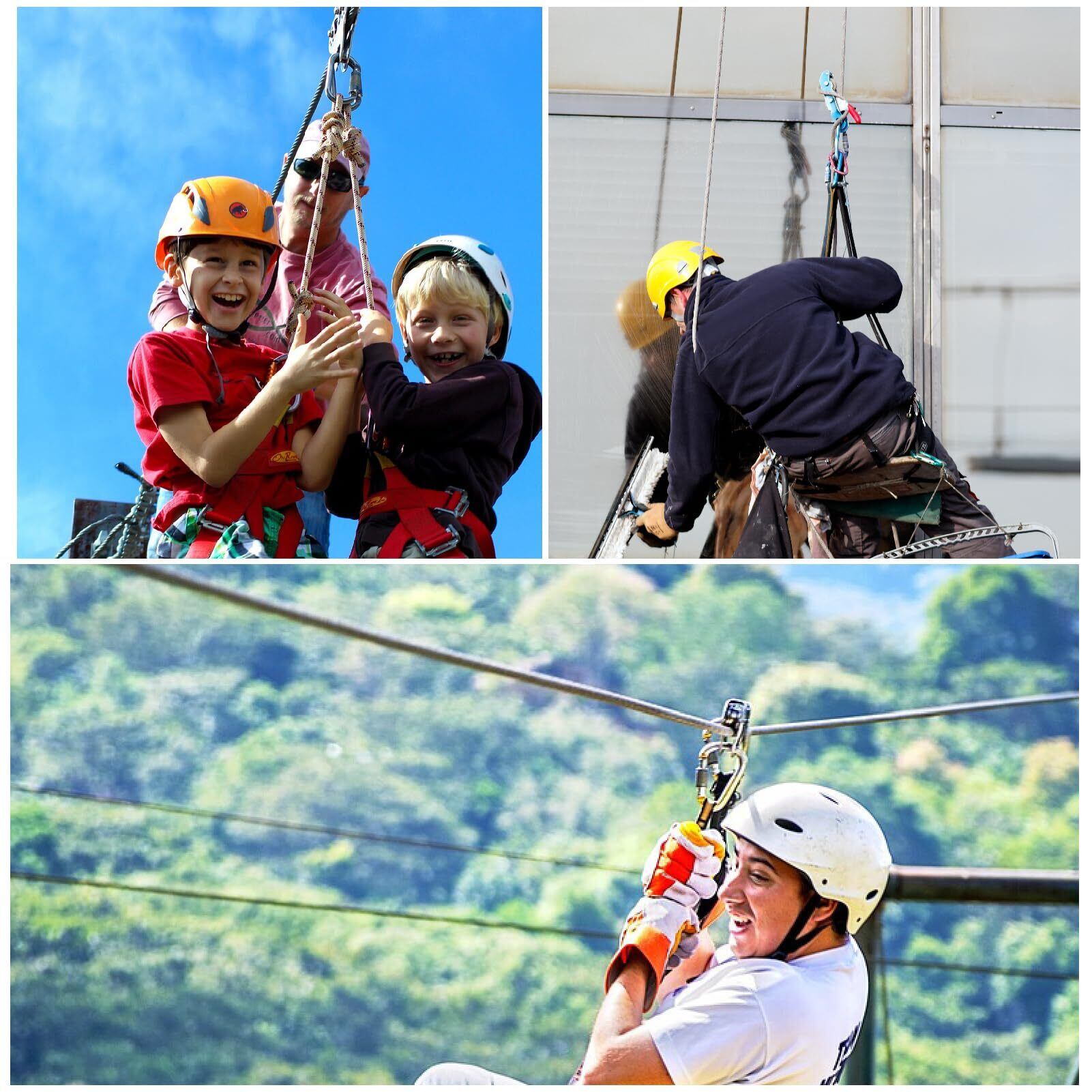 【応用】- シングルプーリーは初心者でも使いやすいです。ジップライニング、クライミング、登山、ケイビング、ホイスト、高空レスキュー、荷物運搬なのシーンでご利用いただけます