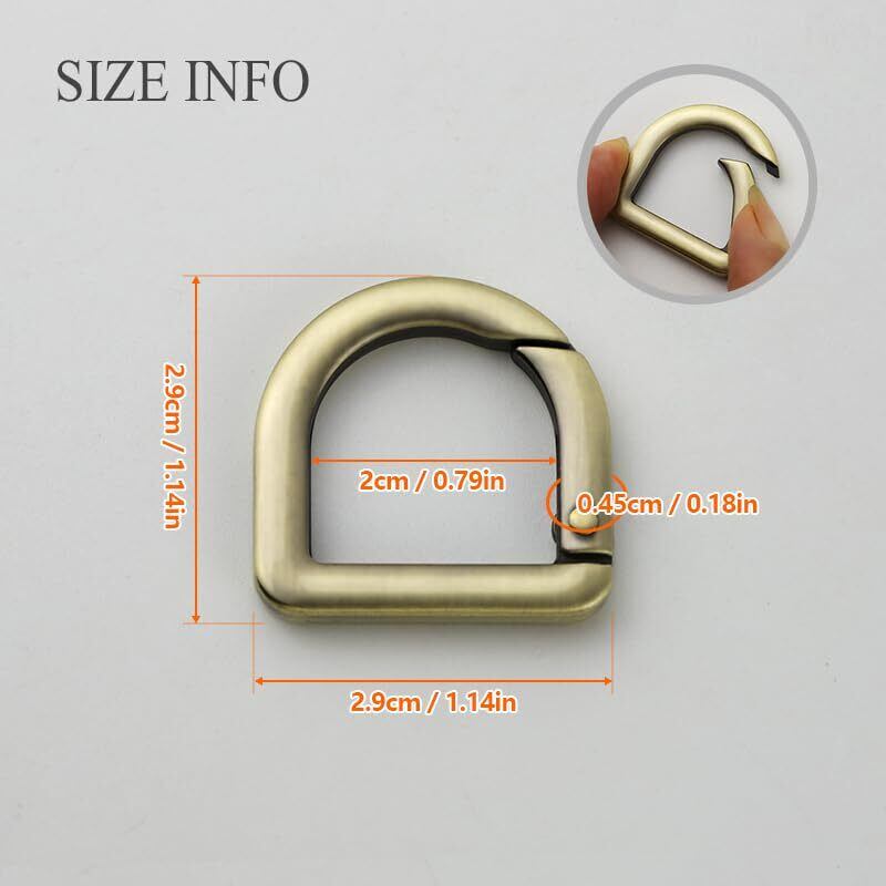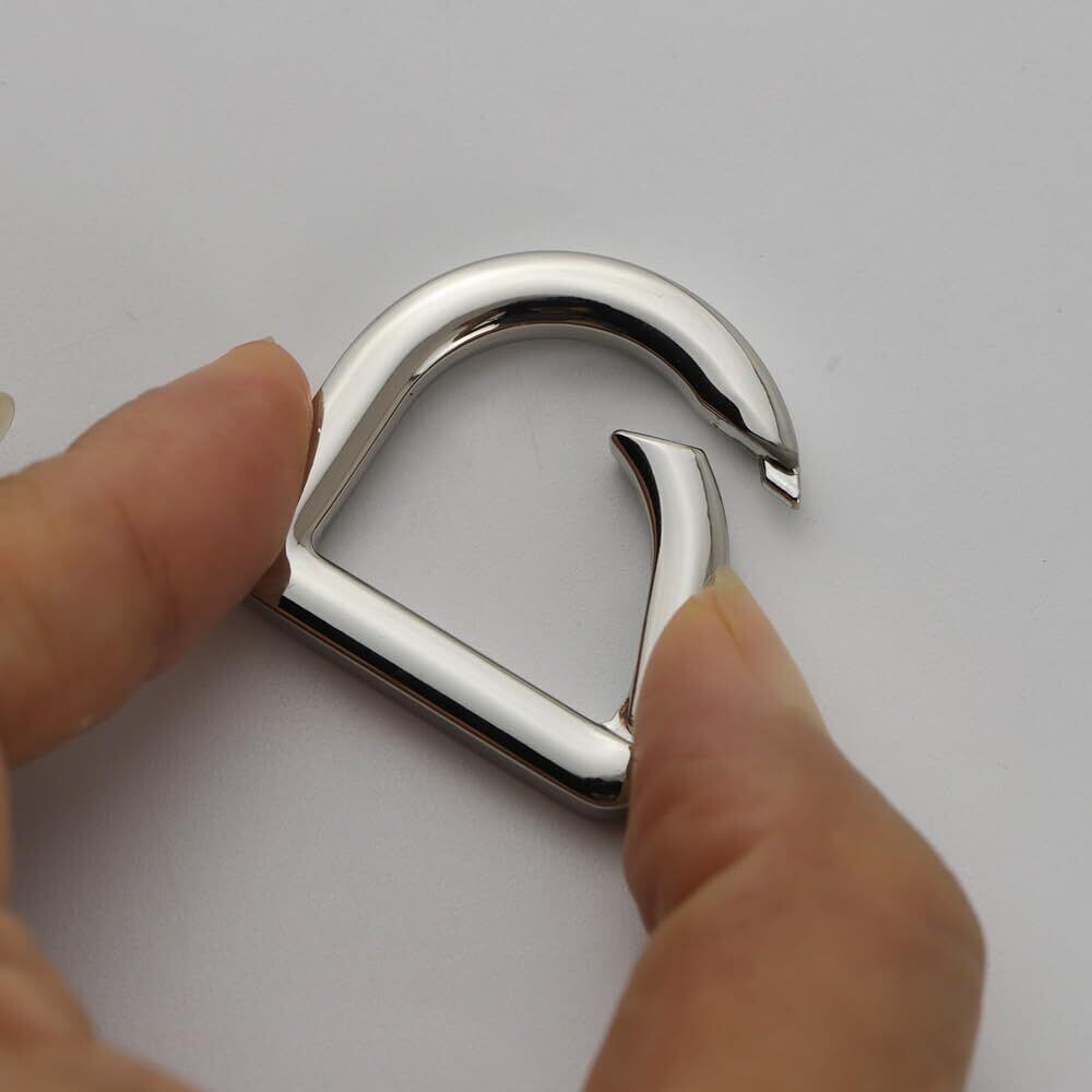 【簡単に使える】小型なので開閉は片手でも簡単に出来るD型スプリングです。手で内側に押すだけで簡単に開きます。アイテムを吊るす時に強めのバネでしっかり閉じます。使いやすい丸型カラビナです。