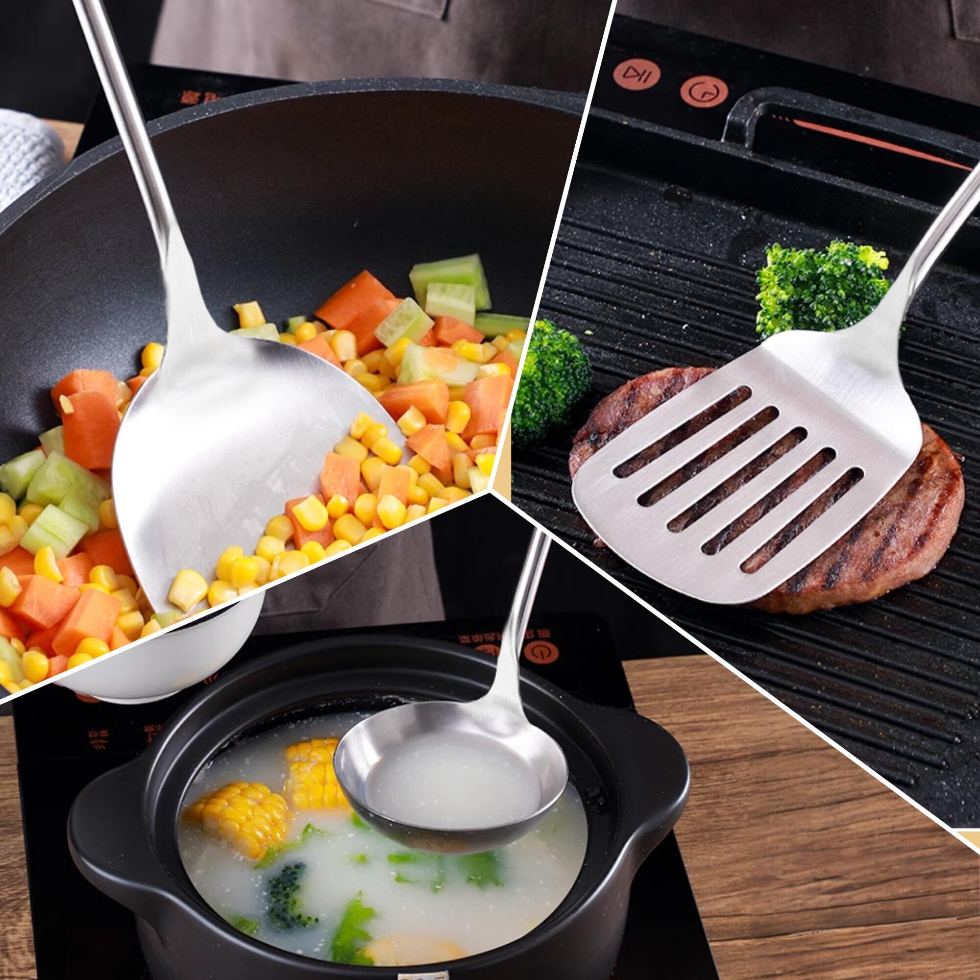 FJNATINH スパチュラ&スプーン - 中華鍋ツール2点セット - 万能中華スプーン&スパチュラ - ステンレス製調理器具 中華鍋アクセサリー