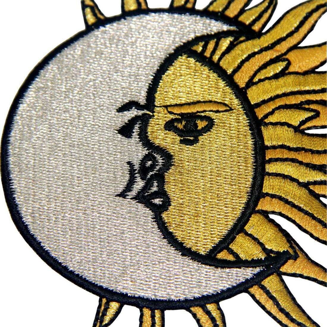 クレセント 太陽の月 刺繍入りアイロン貼り付け/縫い付けワッペン