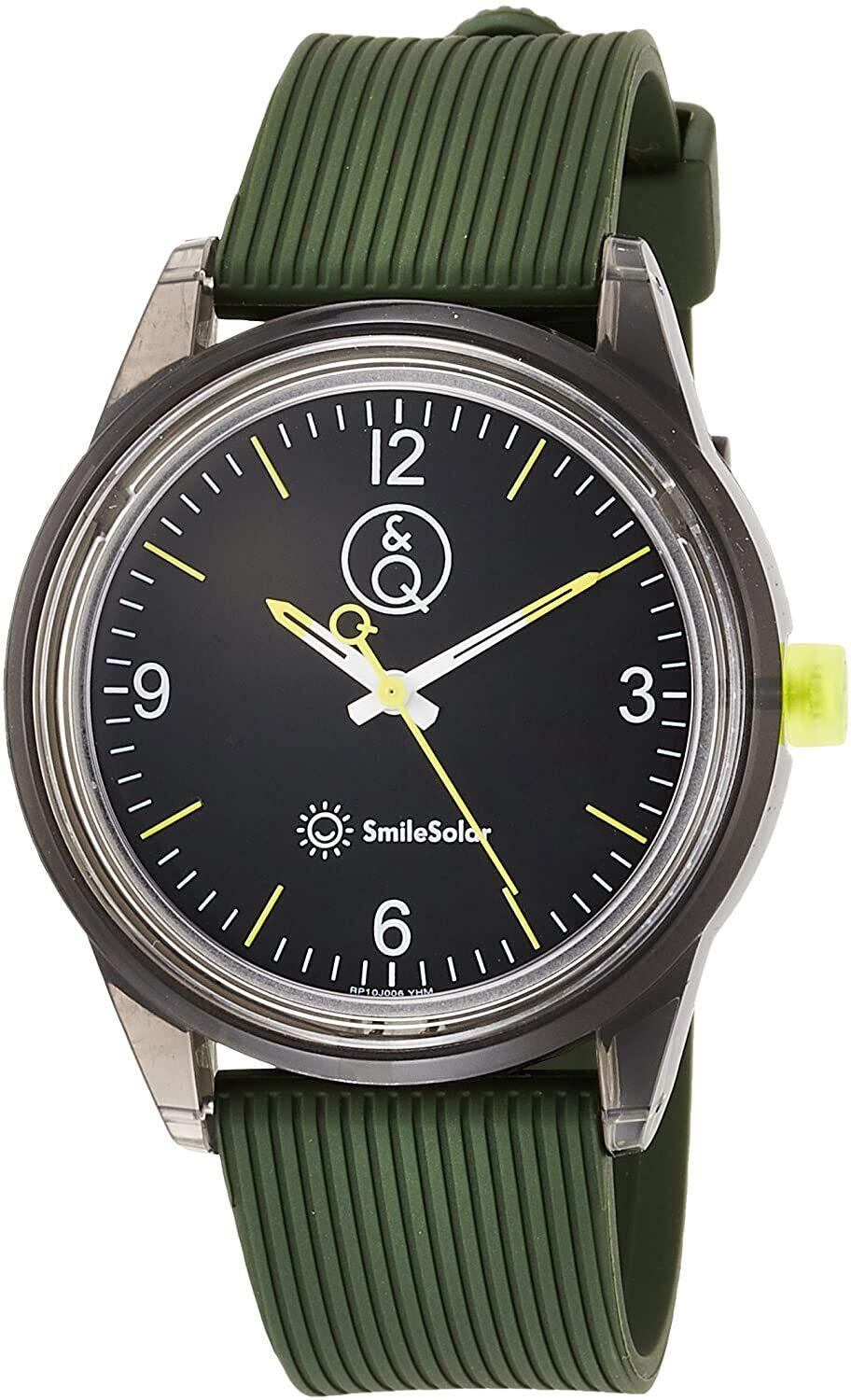 【特価セール】[シチズン Q&Q] 腕時計 アナログ スマイルソーラー 防水 ウレタンベルト RP10-006 メンズ ブラック × グリーン