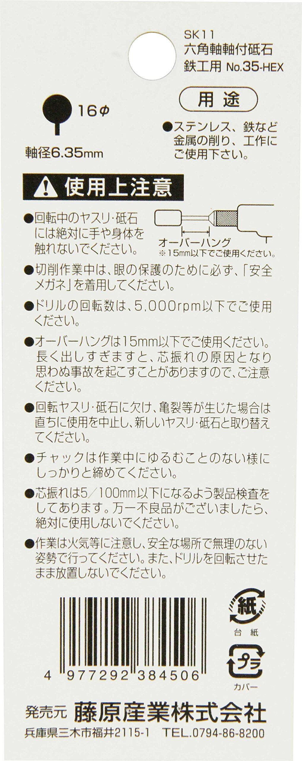 【2022最新】SK11(エスケー11) 六角軸 軸付砥石 鉄工用 16×16mm WA60MV No.35-HEX