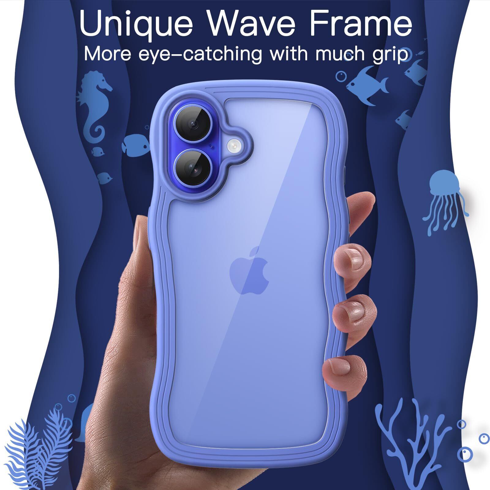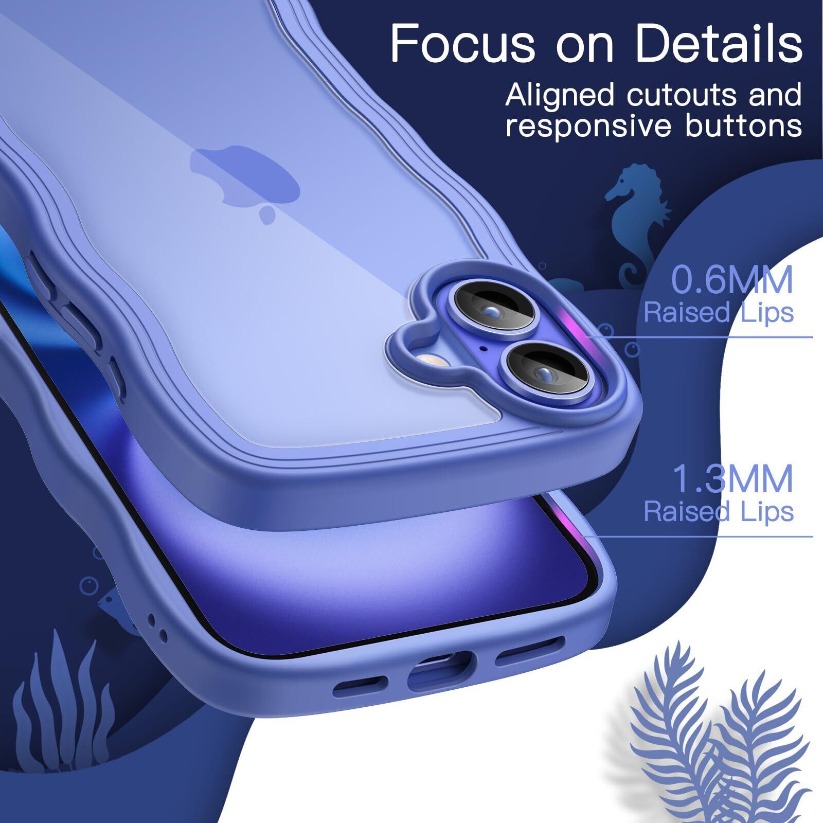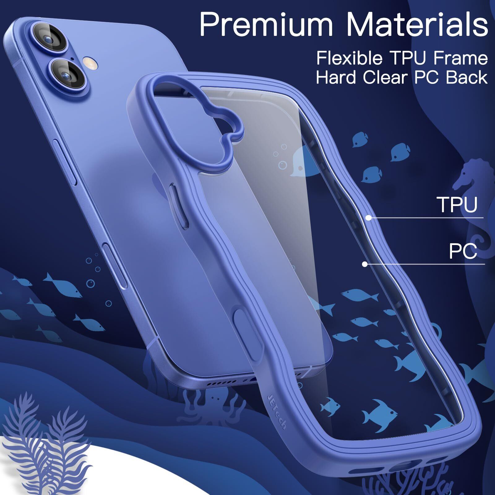 JETech iPhone 16 Plus 6.7インチ用 ウェーブ ケース かわいい 波状フレーム うねうね 耐衝撃 スマホカバー 女性用 女子向け クリア ハードPCバック (ウルトラマリン)