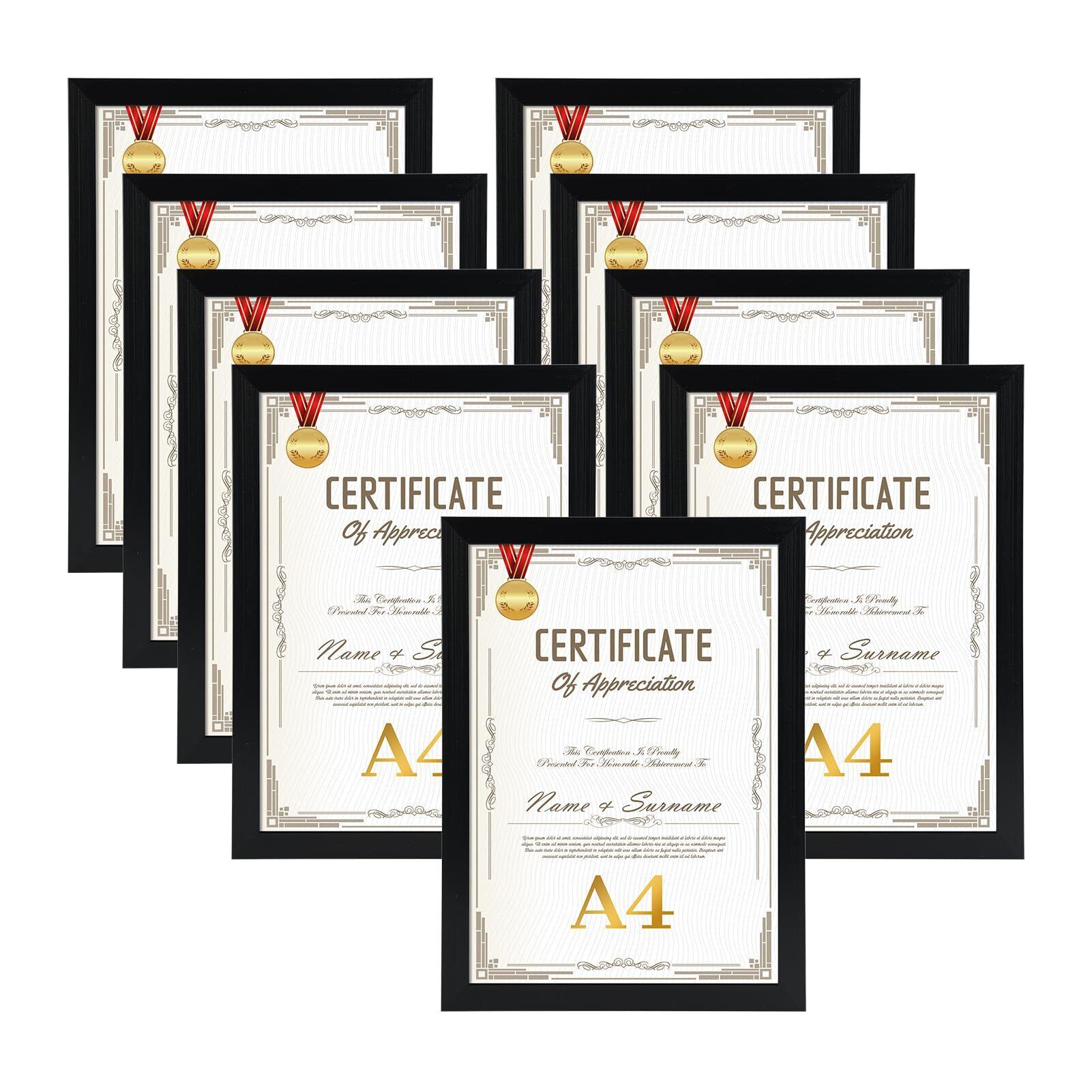 Vasemouh A4 賞状 額縁 壁掛け 卓上兼用 フレーム 210x297mm 写真 額 ブラック セット 9枚
