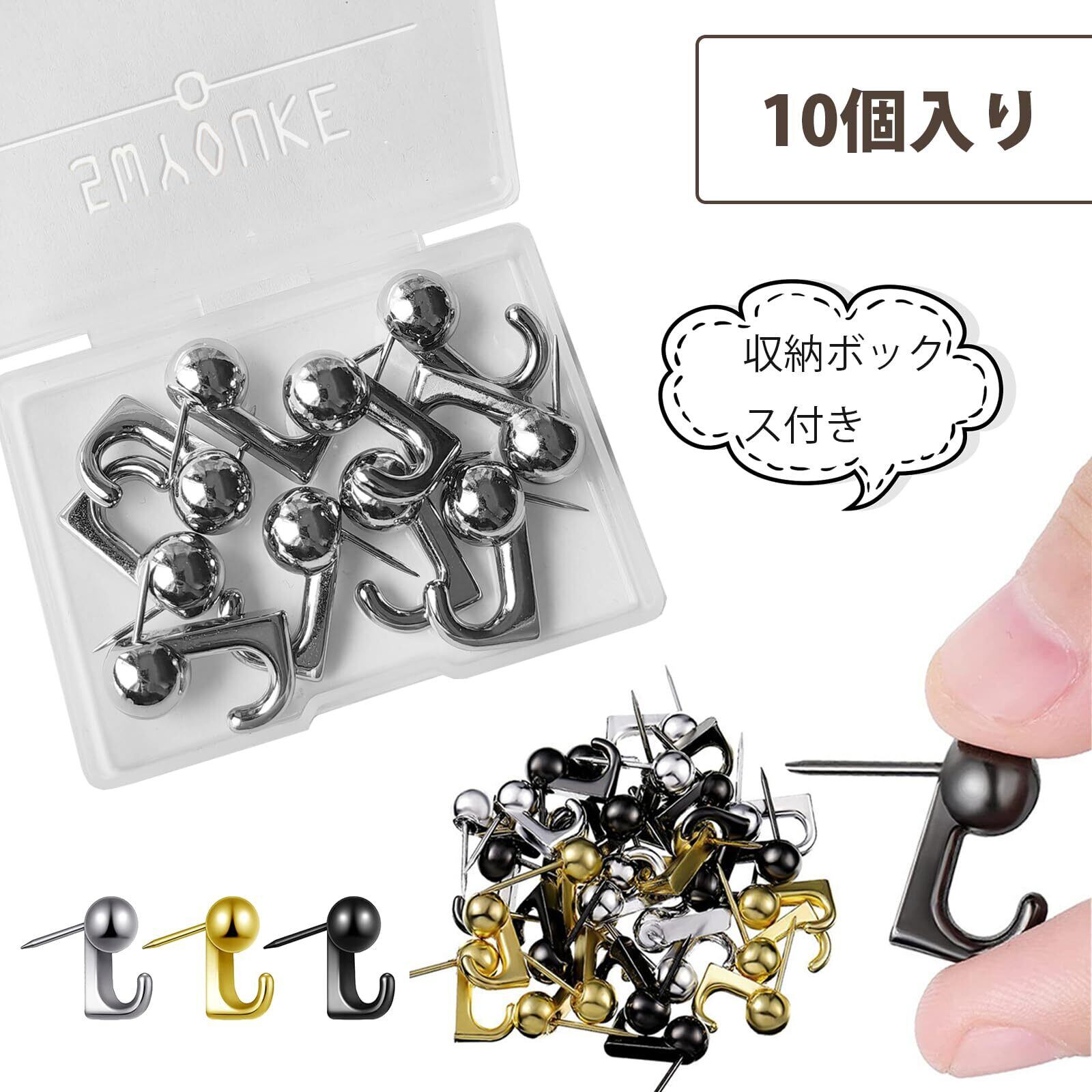 【人気商品】5WYOUKE【10個入】 石膏ボード フック 画鋲 フック ピンフック 耐荷重約5kg 壁 傷つけない おしゃれ ブラック ミニ 目立たない 押しピン 賃貸 絵画 額縁 時計 カレンダー 飾り用 壁掛け フック 石膏ボード ベニヤ板 木用 フック 収納ケース 付き | allstore2
