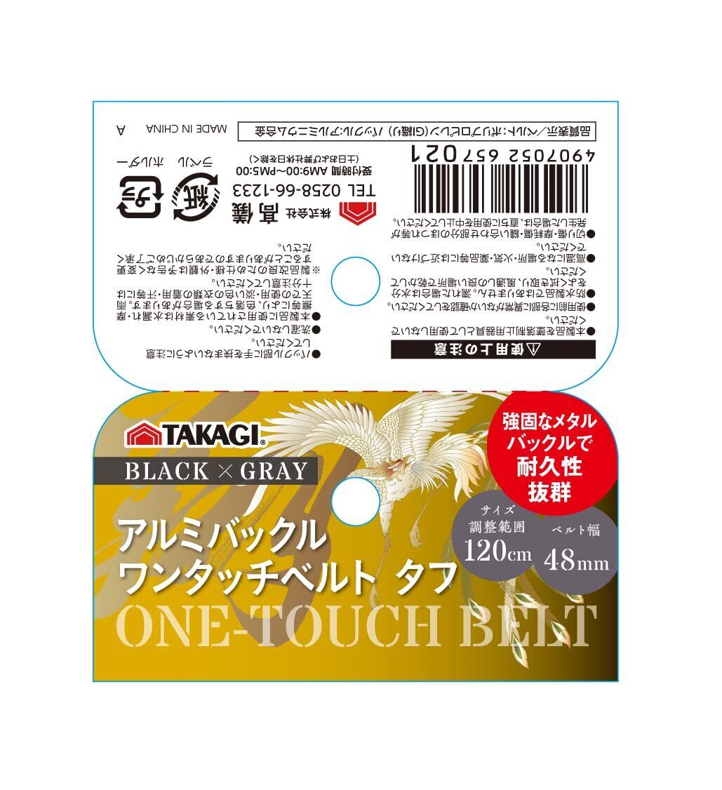 高儀(Takagi) アルミ スムーズ ワンタッチ 作業ベルト タフ 48mm ブラック/グレー