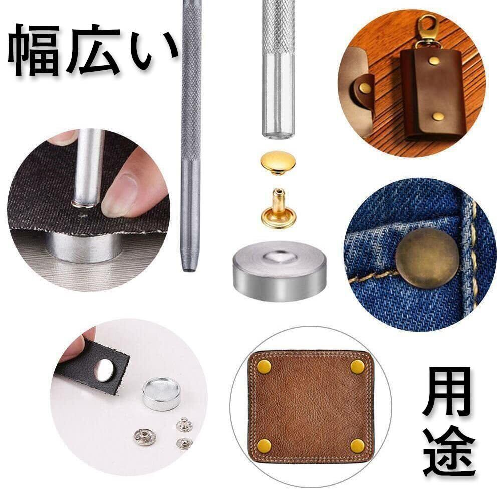 【使いやすい】専用のホック打ち具を一箱に揃えた便利なお得セットです。手芸、修理用カシメセット!使用方法は簡単!これは挟むだけで穴が開くから初心者にも使いやすいです。