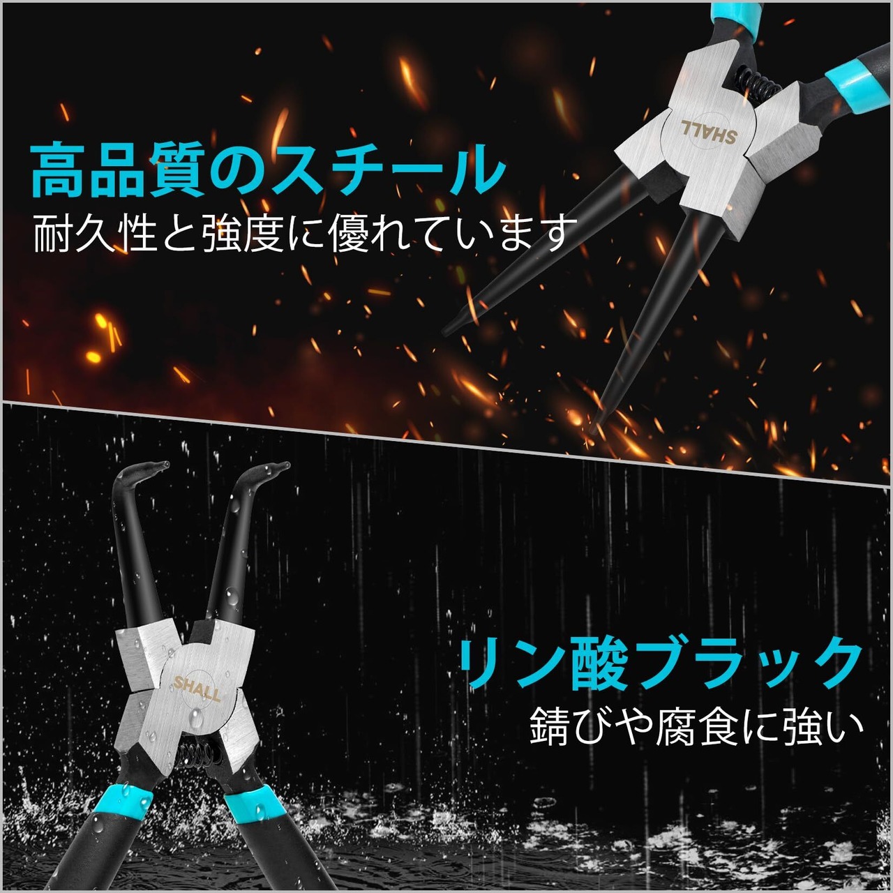 多用途: SHALL 保持リングツールプライヤーは、外部に配置された保持リングの取り外しと取り付けに非常に適しています。機械産業、自転車、オートバイ、パイプライン、農業機械産業などで、固定ベアリングまたはボアベアリングの取り付け/取り外し/再配置に広く使用されています。