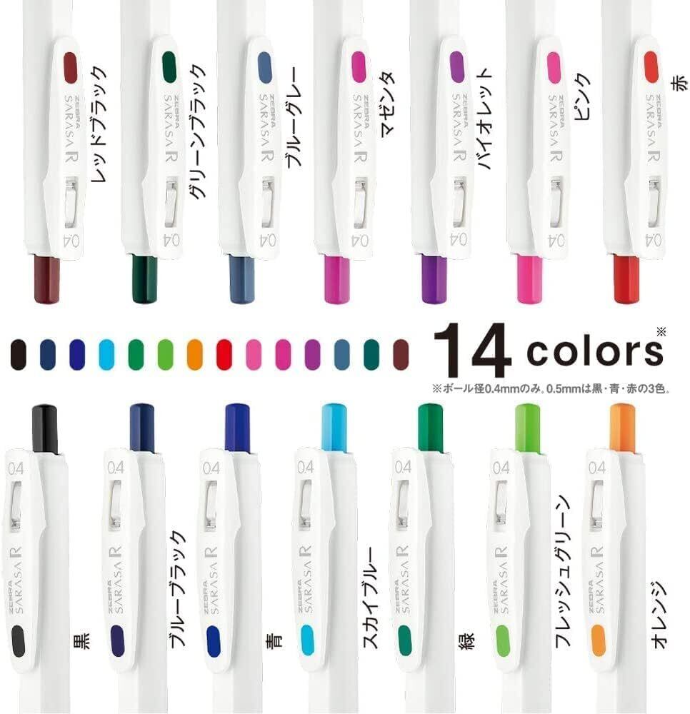 本体の色数は14色ございます。通常のサラサクリップよりも濃いインクでノート書きにおすすめです!