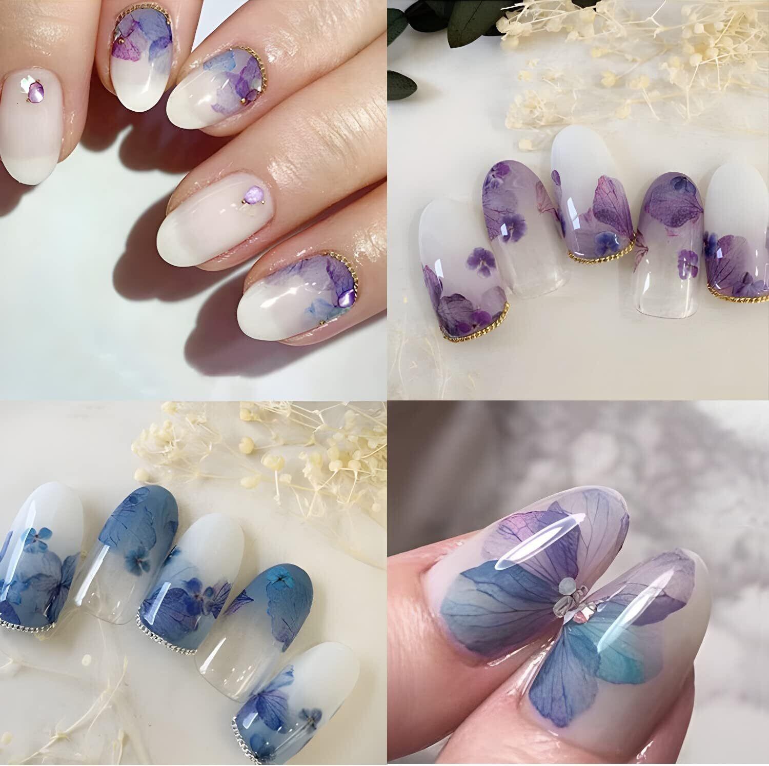 【マルチサイズ】さまざまなサイズがある紫陽花シールは、爪のサイズやネイルスタイルに合わせることができます