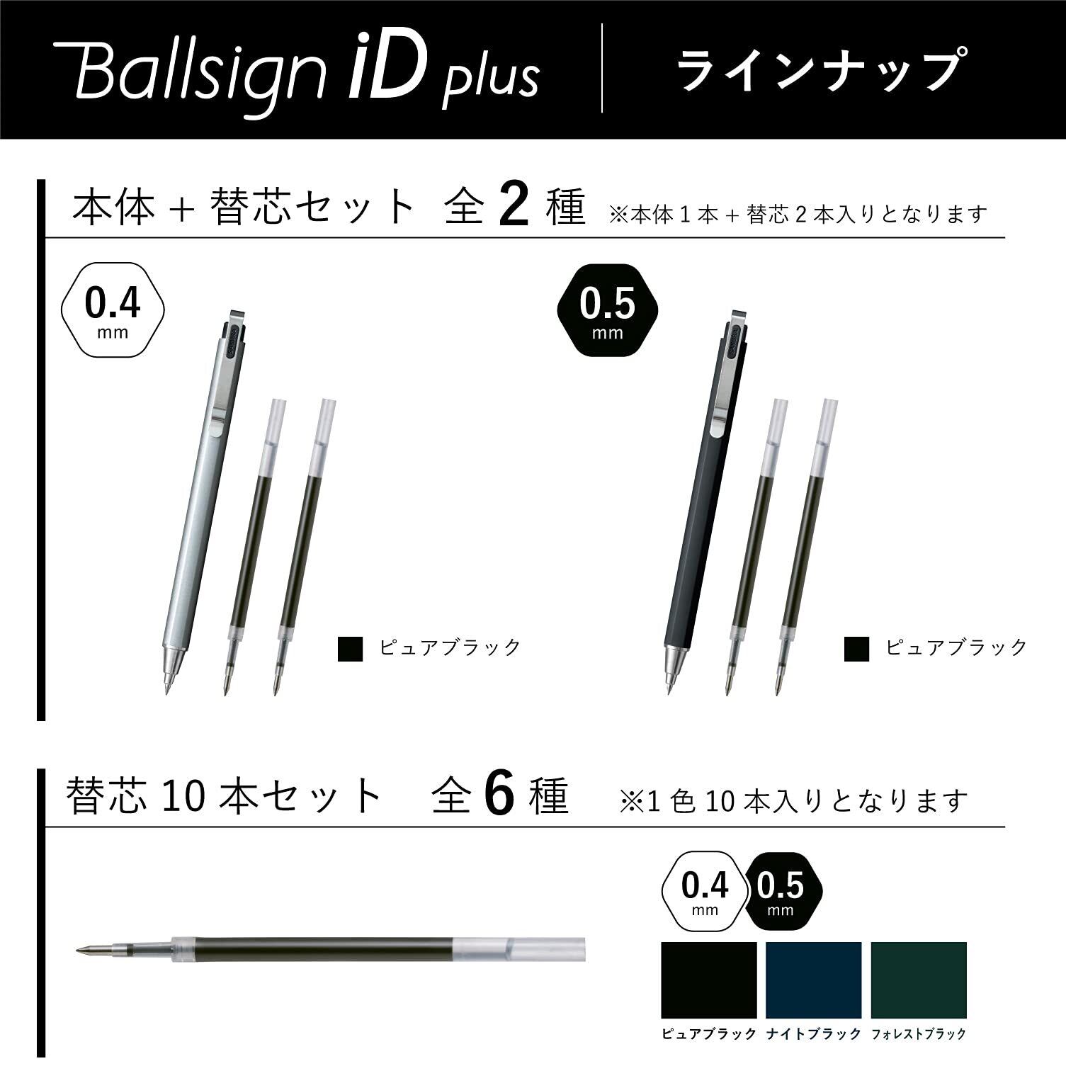 上質さ・握りやすさ・書きやすさが向上した「ボールサインiD plus」。絶妙なカラーバリエーション(ピュアブラック・ナイトブラック・フォレストブラック)の中から、自分にぴったりの黒を選べる。