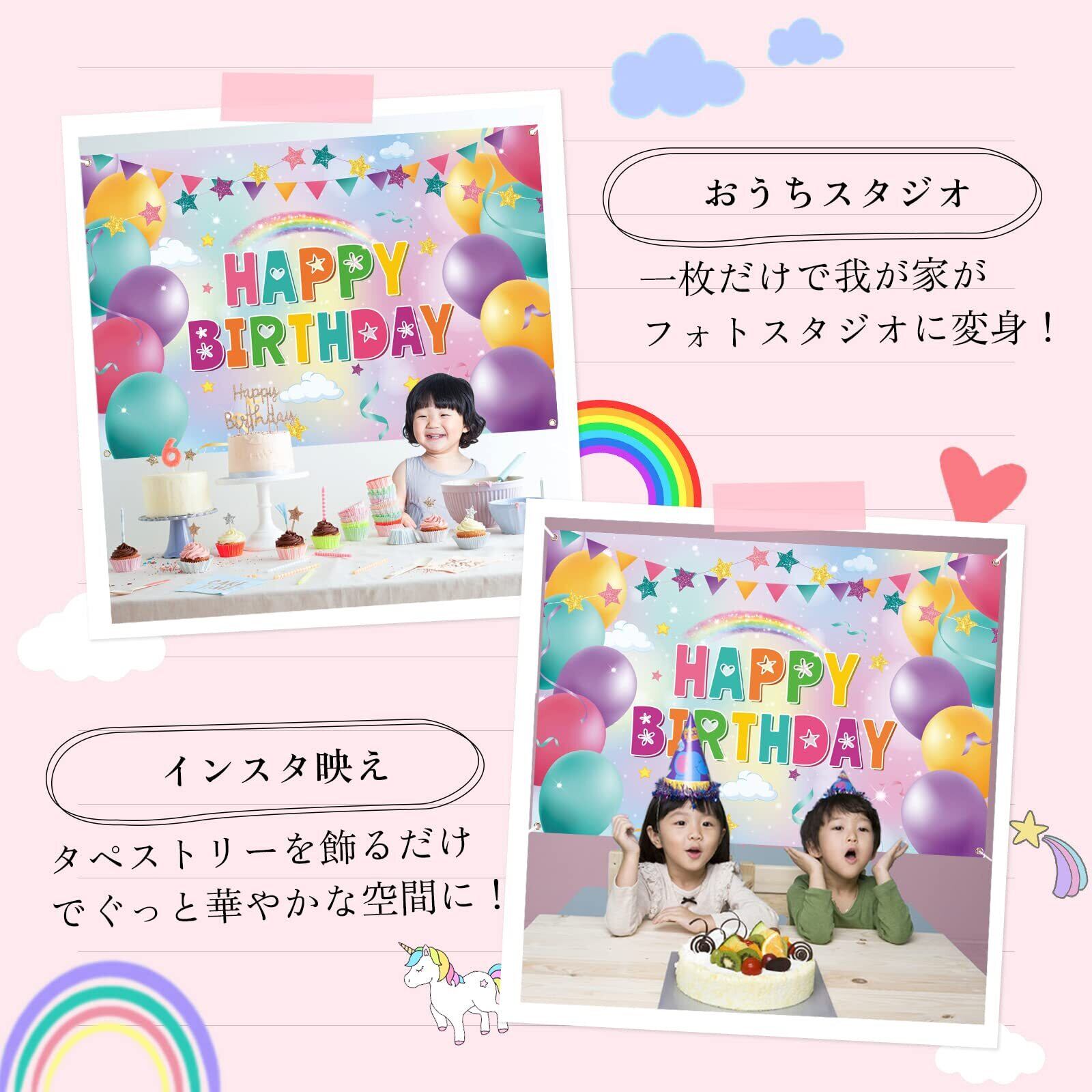 Paready バースデー タペストリー 誕生日 飾り付け 壁掛け フォトポスター 写真背景 壁 飾り Happy Birthday シンプル おしゃれ 装飾 デコレーション パーティー お祝い 女の子 男の子 135*100cm