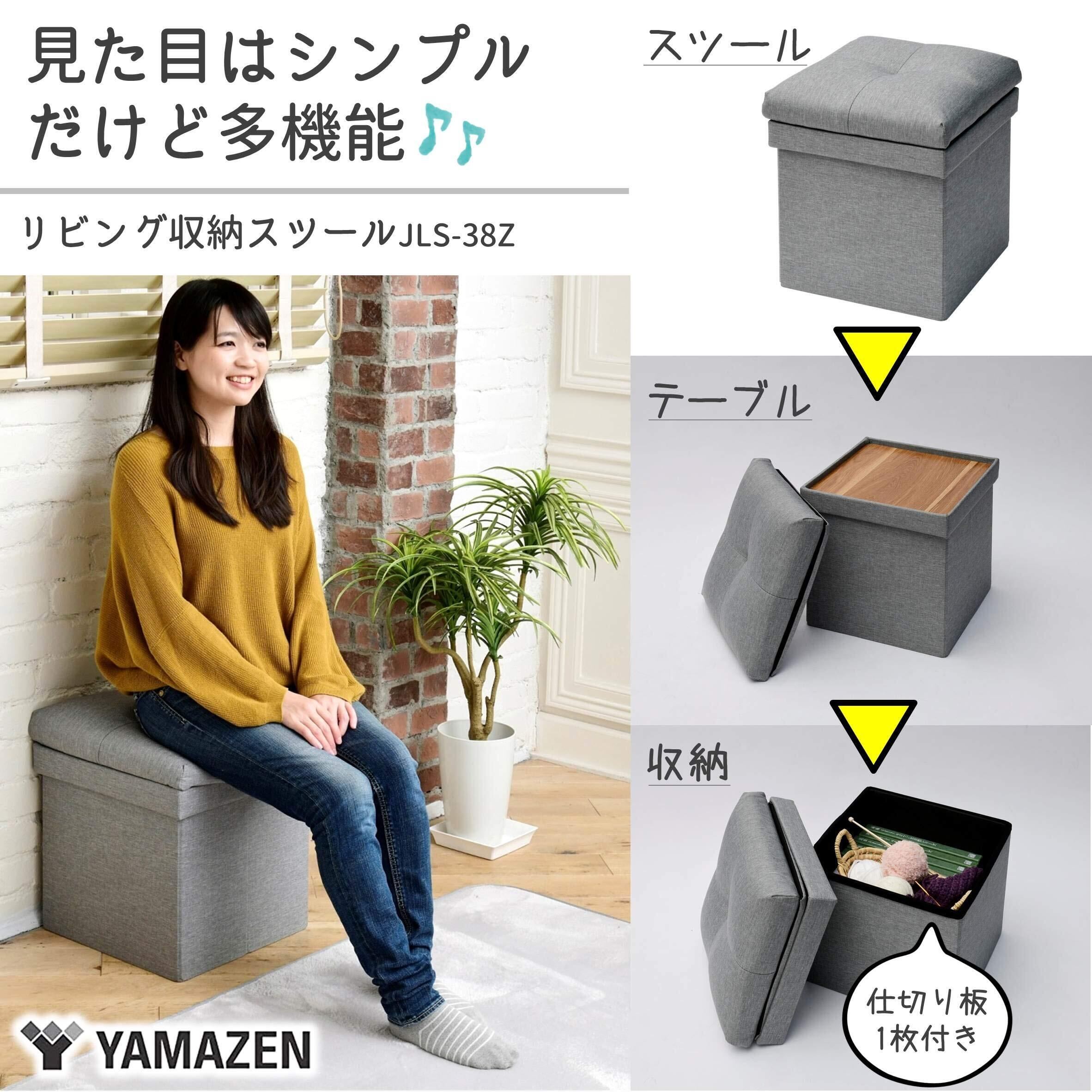 山善(YAMAZEN) 収納スツール テーブル付き 座面が座布団にもなる 折りたためる オットマン 収納ボックス 椅子幅38×奥行38×高さ44cm かんたん組立 ライトグレー JLS-38Z(LGY)