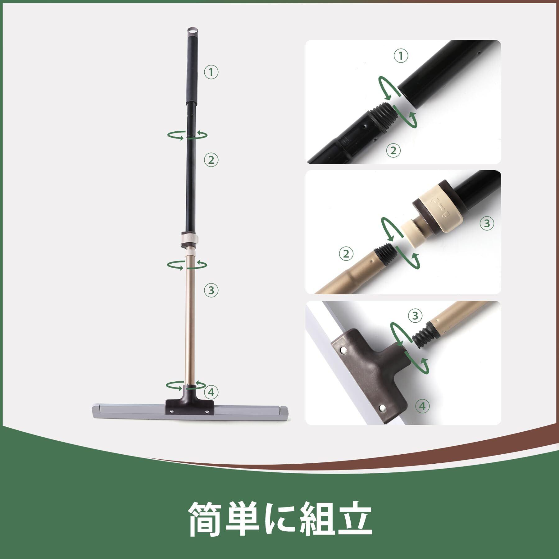 【組立簡単】:取付け簡単で、ヘッドとハンドル4段接続すれば、直接使えます。持ち手部分にはフックを通せる穴が開いていますので、使わない時は壁に掛けて収納もできます。