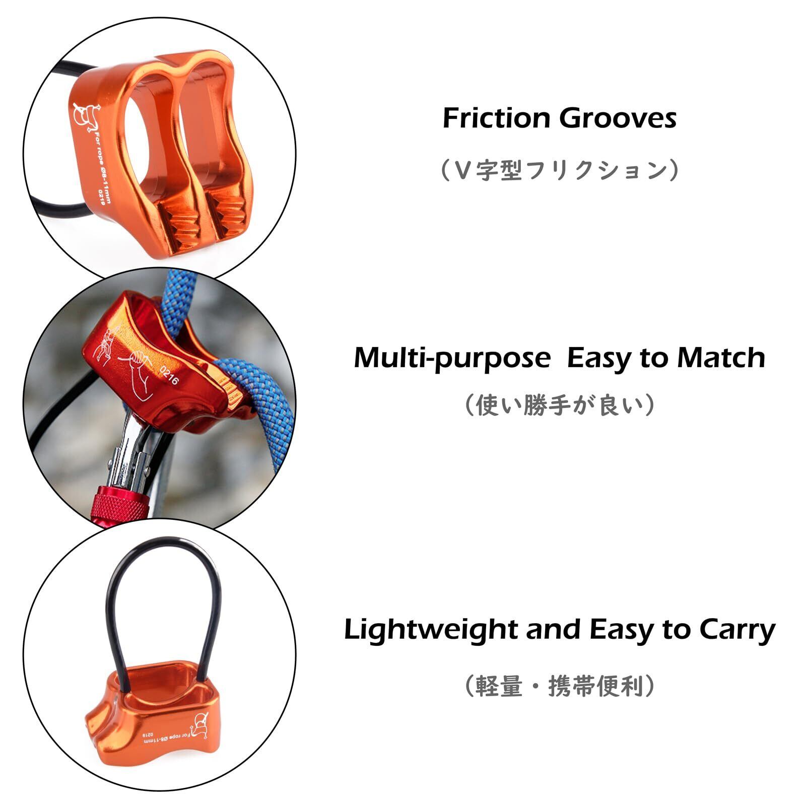 【強度】- 25kN(約2500kg)。超軽量、コンパクトで使いやすいV字溝付きビレイデバイス、歯止めチャンネル付き、クライマーのラックの軽量に最適です。