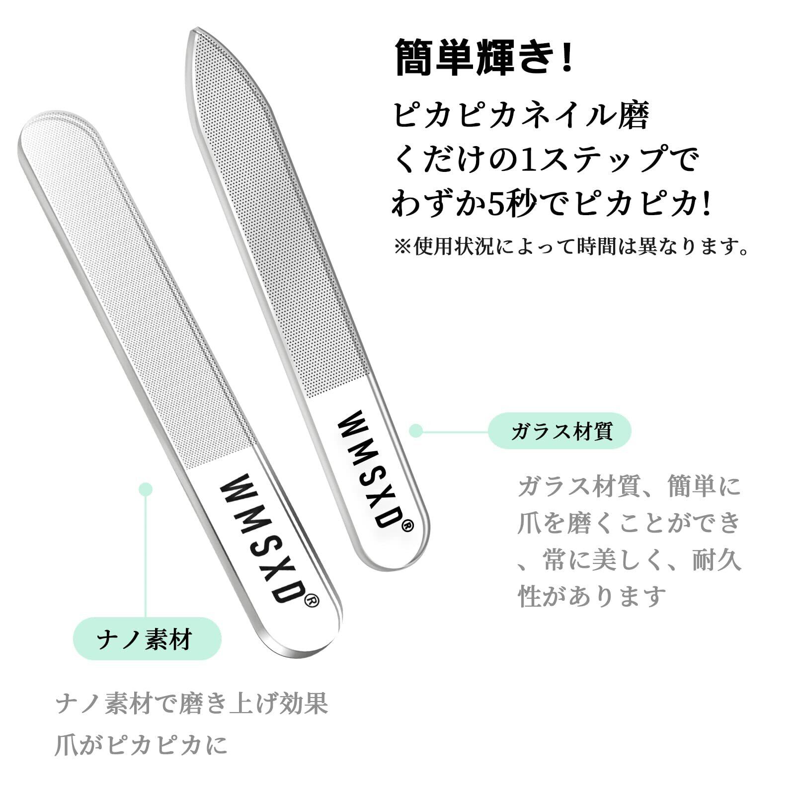 WMSXD 爪磨き 爪やすり 最新ナノテク技術 ガラス製 5秒でピカピカになる つめみがき つめやすり ツメ磨き ネイルケア 介護 子供 男女兼用 お手入れ簡単 二つセット
