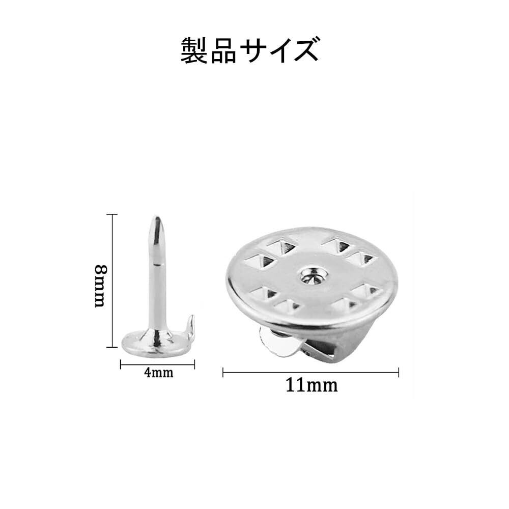 1.【製品セット】金・銀 各50組(針+留め具) 2.【サイズ】 受け部 直径:11mm 針の長さ:8mm・皿直径:4mm 3.【製品特徴】ンバッジは高品質の黄銅ニッケルメッキで作られています。安全を確保するとともに、バッジはしっかりとロックされます。黄銅素材のピンは耐摩耗性が強くて、ニッケルメッキにより、錆びにくくなります。 4.【幅広い適用性】ピンバッジは、サポートされていないネクタイやラペルピン、または手作りクラフトピンで使用できます。また、アクセサリー、ブローチ、帽子、ブートニア、DIYパーツ、おもちゃなどのピンとして使用できます。 5.【キャッチの差し方】 針を差し込む際は、キャッチの左右に付いている羽根のようなつまみをつままず、そのまま針を差し込んでください。 つまみをつまみながら差し込むと、キャッチが緩くなる恐れがあります。※キャッチが針から抜けやすい場合はつまみを外側に倒す事で改善されます。